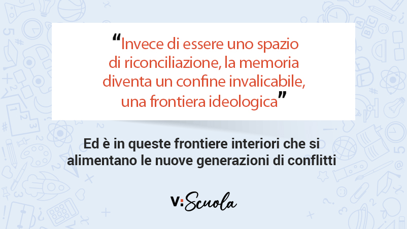 In questo contesto, la scuola, i media, la letteratura e persino i nomi delle strade contribuiscono a rafforzare una narrazione storica spesso univoca, che non ammette le ragioni dell’altro. La memoria, invece di essere uno spazio di riconciliazione, diventa un confine invalicabile, una frontiera ideologica. Ed è in queste frontiere interiori che si alimentano le nuove generazioni di conflitti.