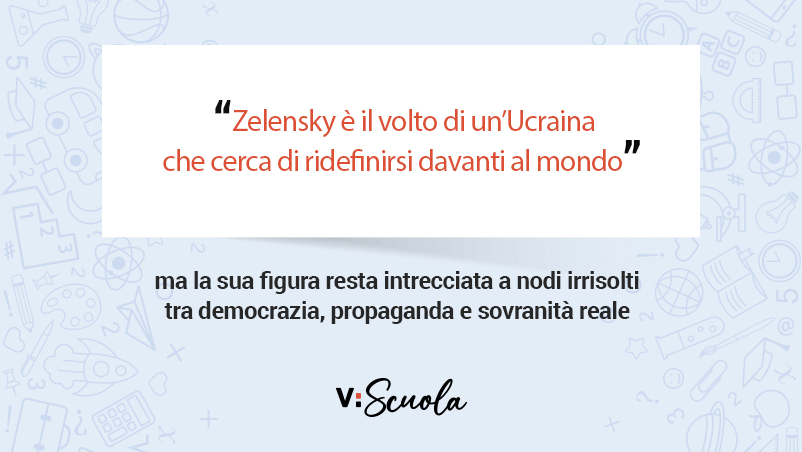 L’invasione russa nel 2022 catapulta Zelensky in una nuova dimensione politica. Da presidente giovane e inesperto si trasforma, in pochi giorni, nel volto globale della resistenza ucraina. I suoi discorsi, trasmessi in tutti i parlamenti occidentali, si fanno carichi di retorica civile e militare: l’Ucraina viene presentata come l’avamposto della libertà contro l’autoritarismo.