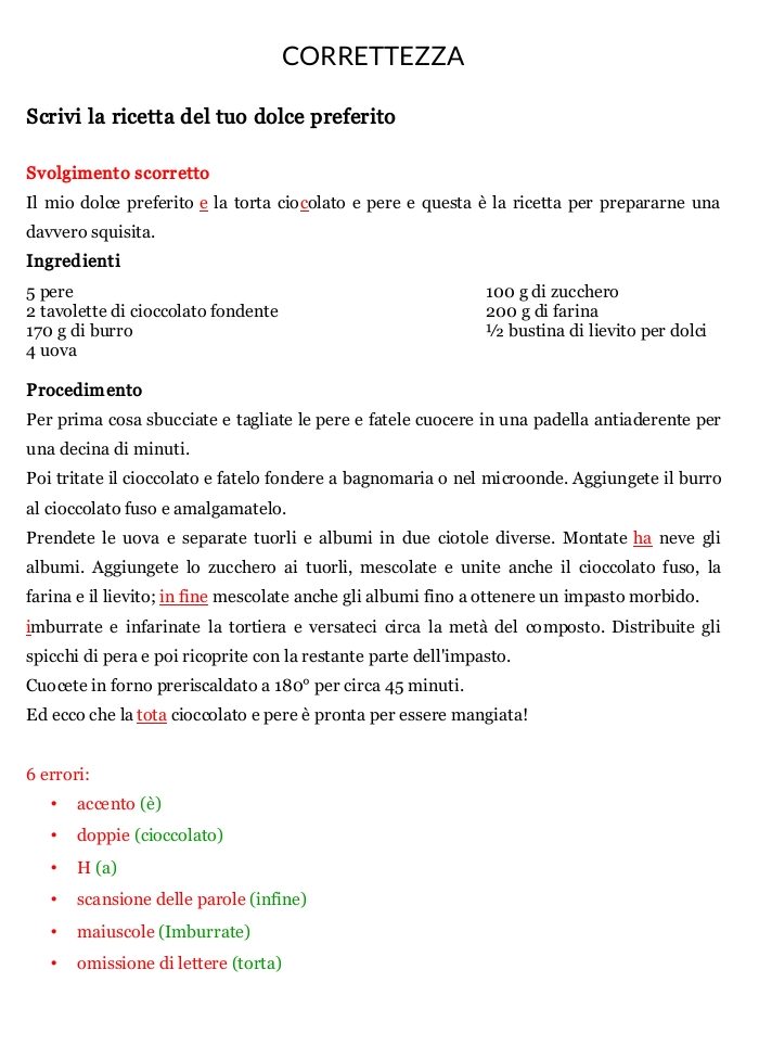 Stampa la scheda a lato: chi ha scritto la ricetta ha fatto un po’ di errori di ortografia! Rileggi sempre i tuoi testi per non fare lo stesso. Scarica il pdf qui:
