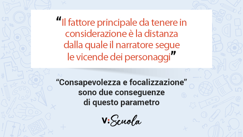 Il fattore principale da tenere in considerazione è la distanza dalla quale il narratore segue le vicende dei personaggi. Consapevolezza e focalizzazione sono due conseguenze di questo parametro.