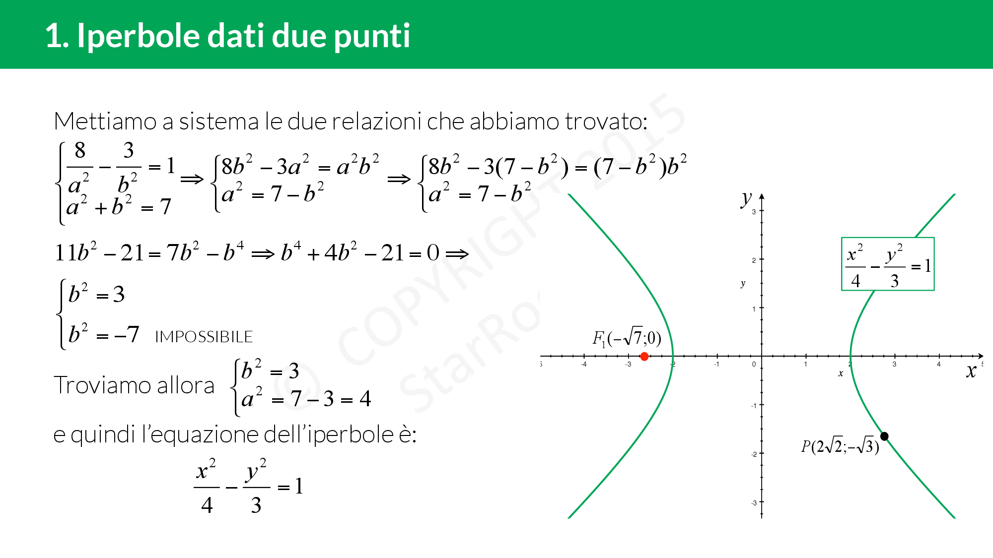 - Trovare l'equazione dell'iperbole dati due punti