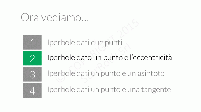 Impara quali sono le condizioni per trovare un’iperbole che passa per due punti, oppure conosci un punto e la sua eccentricità.