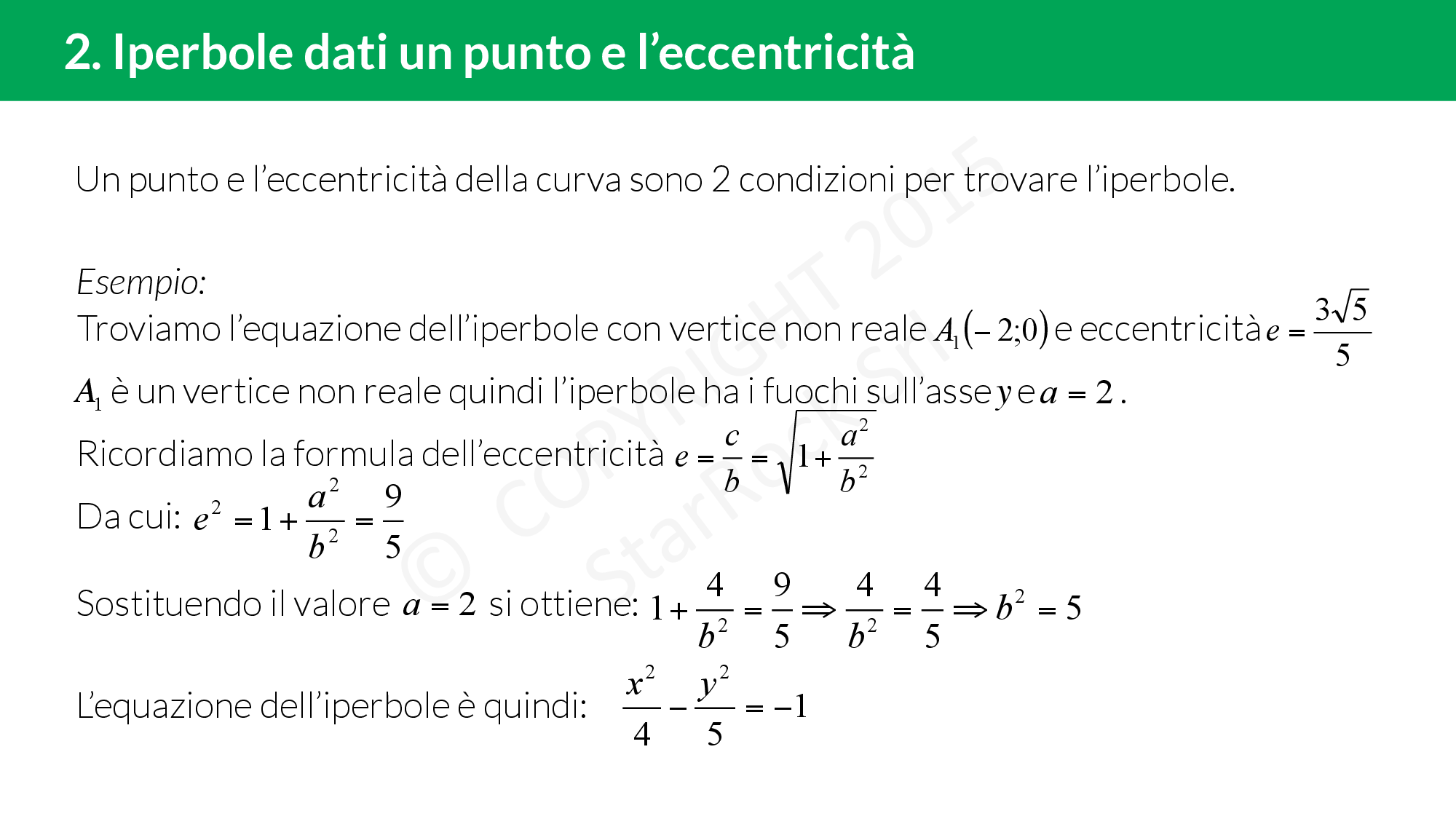 - Trovare l'equazione dell'iperbole dati un punto e l'eccentricità