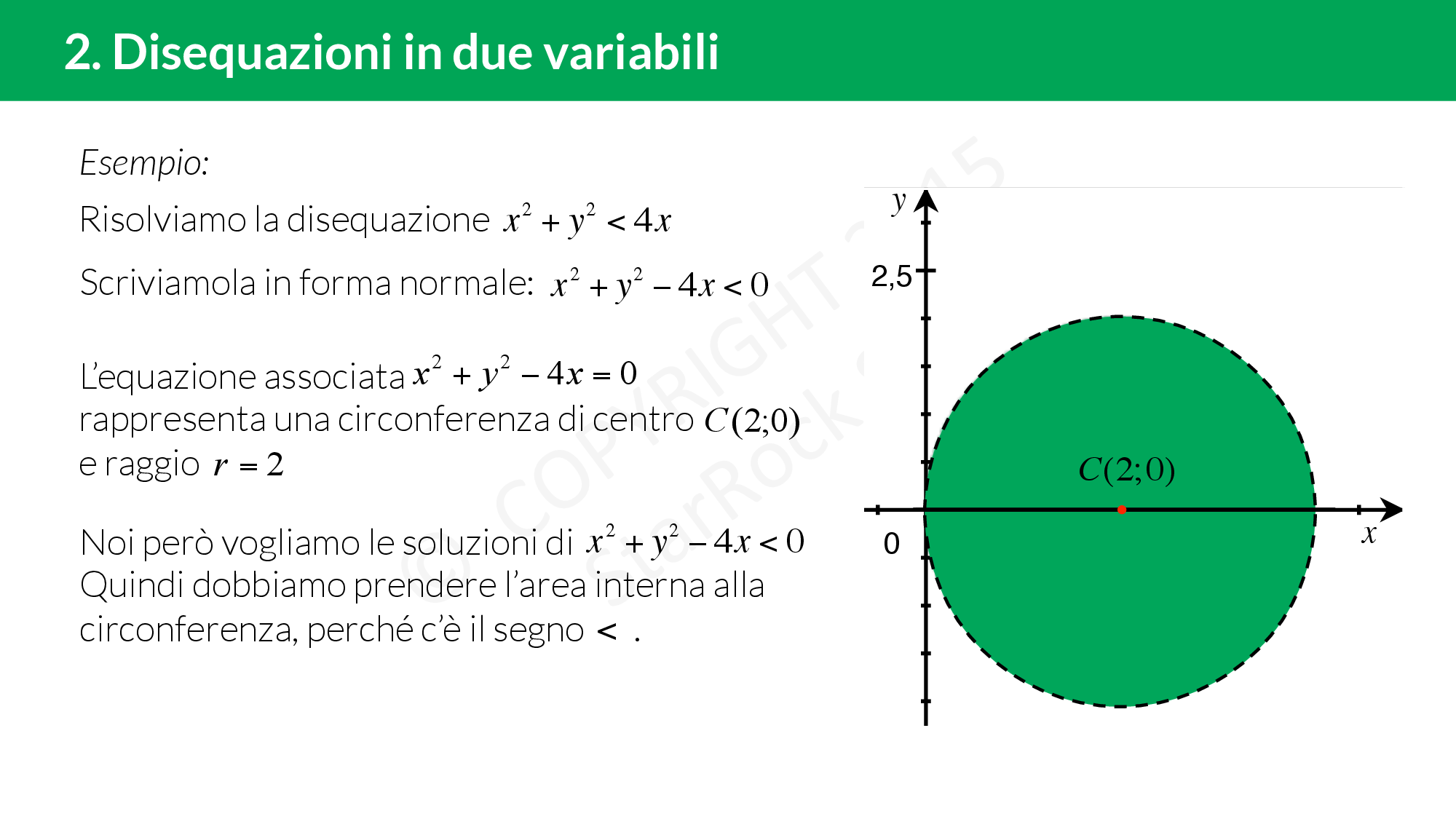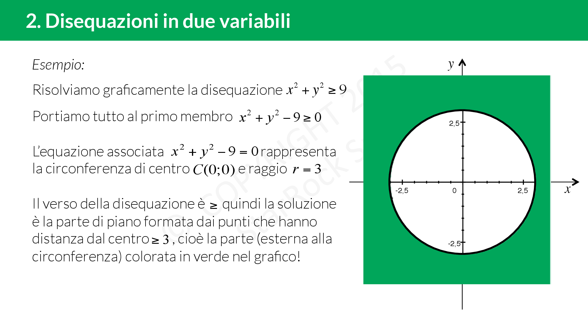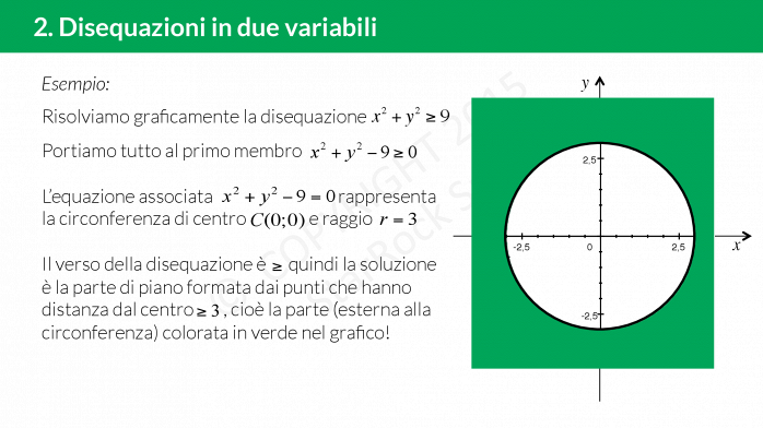 - Se £$x^2+y^2+ax+by+c>0$£ dobbiamo prendere l’area esterna alla circonferenza