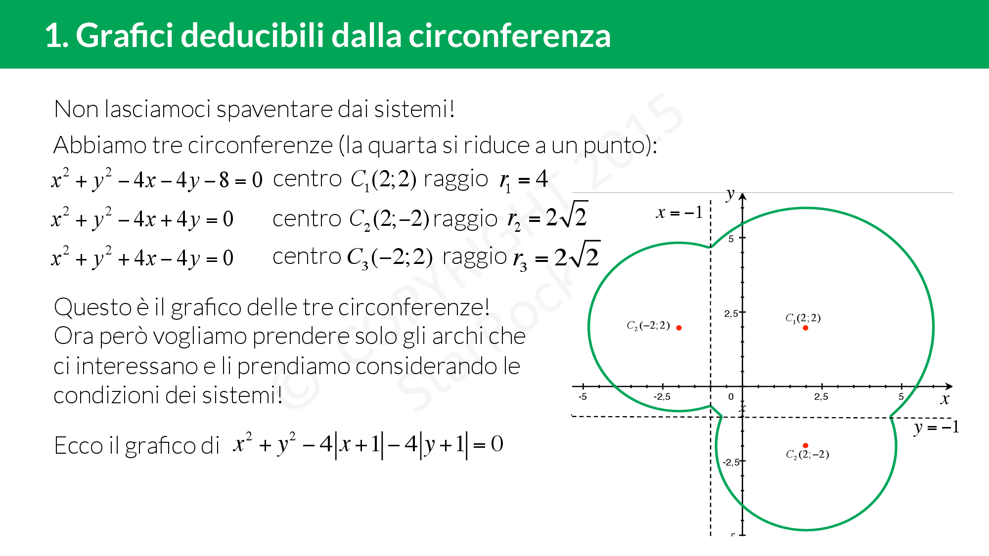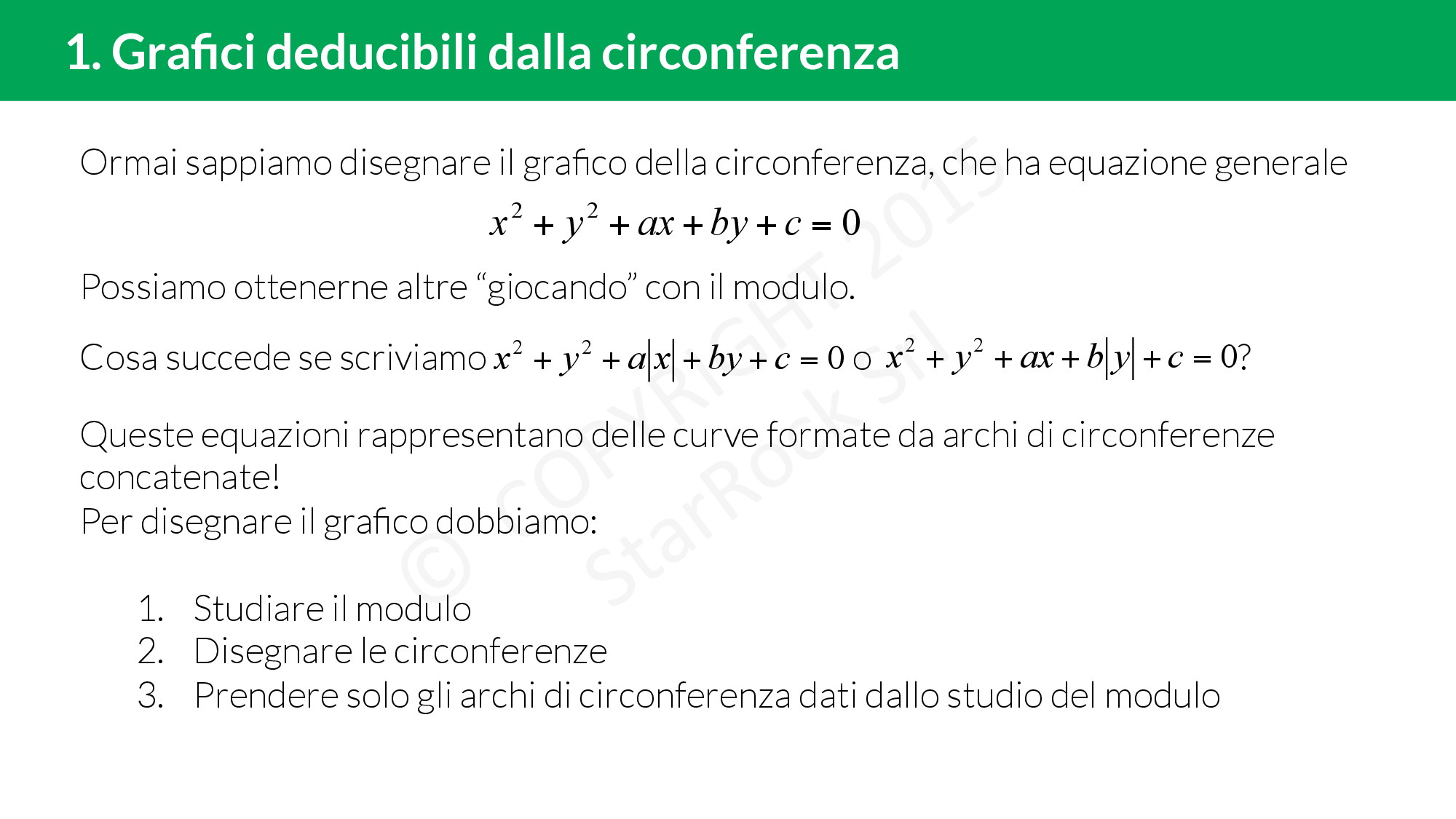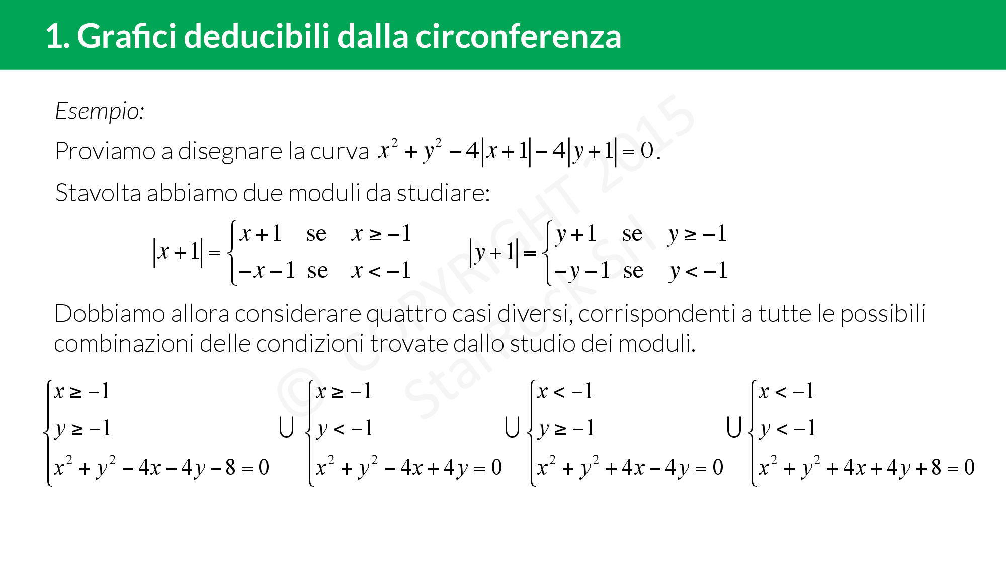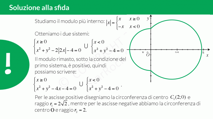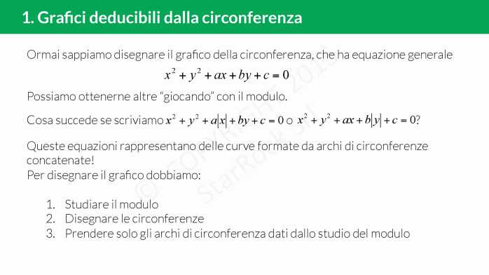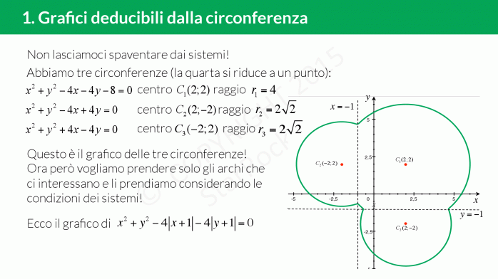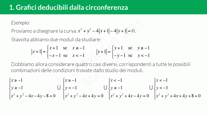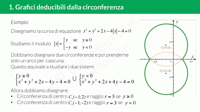- Grafici deducibili dalla circonferenza: impara a disegnare il grafico di un’equazione di una circonferenza dove compaiono dei moduli