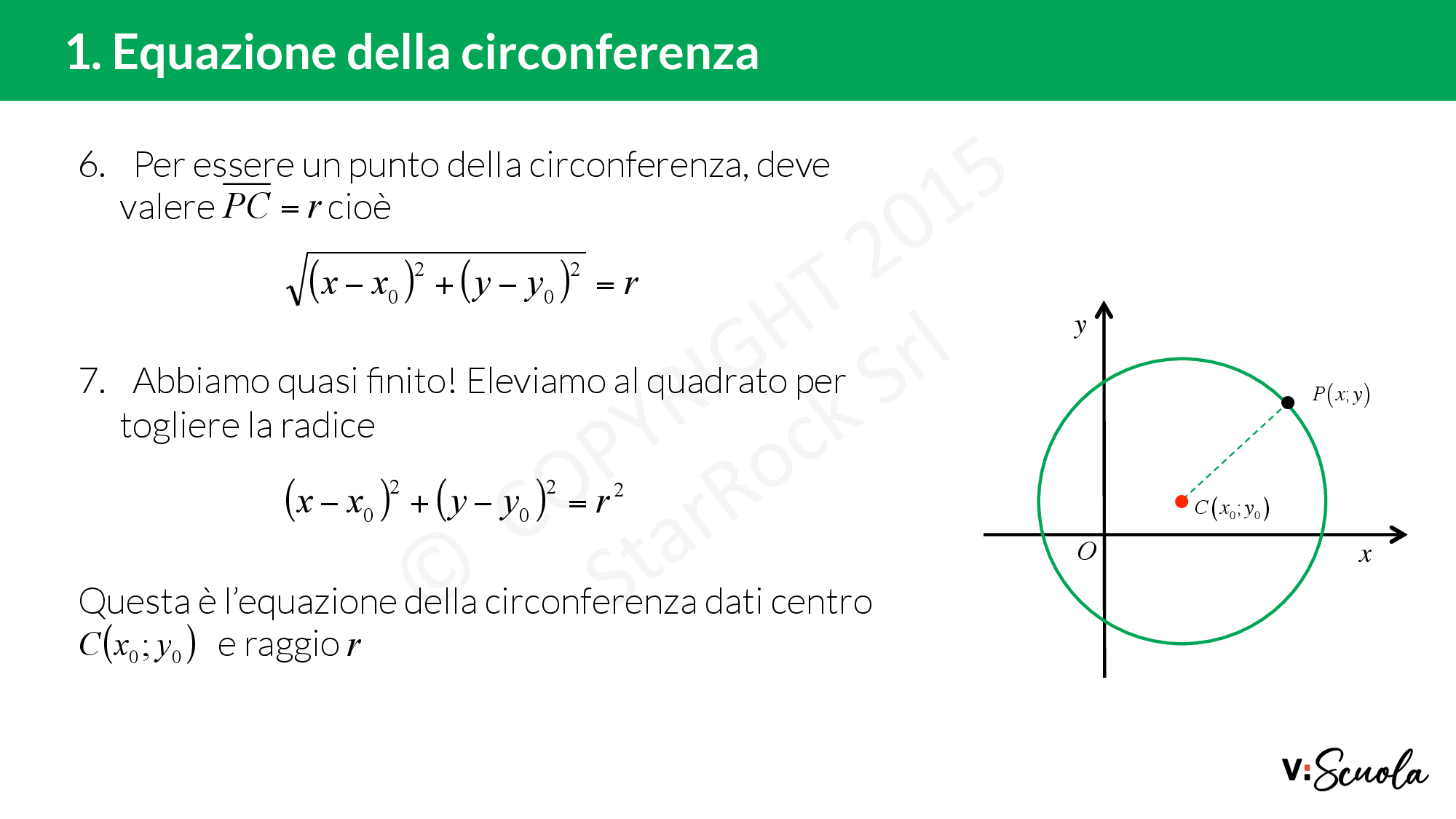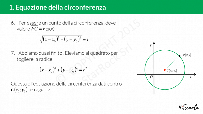 - Per essere un punto della circonferenza, deve valere £$\overline{PC}=r$£