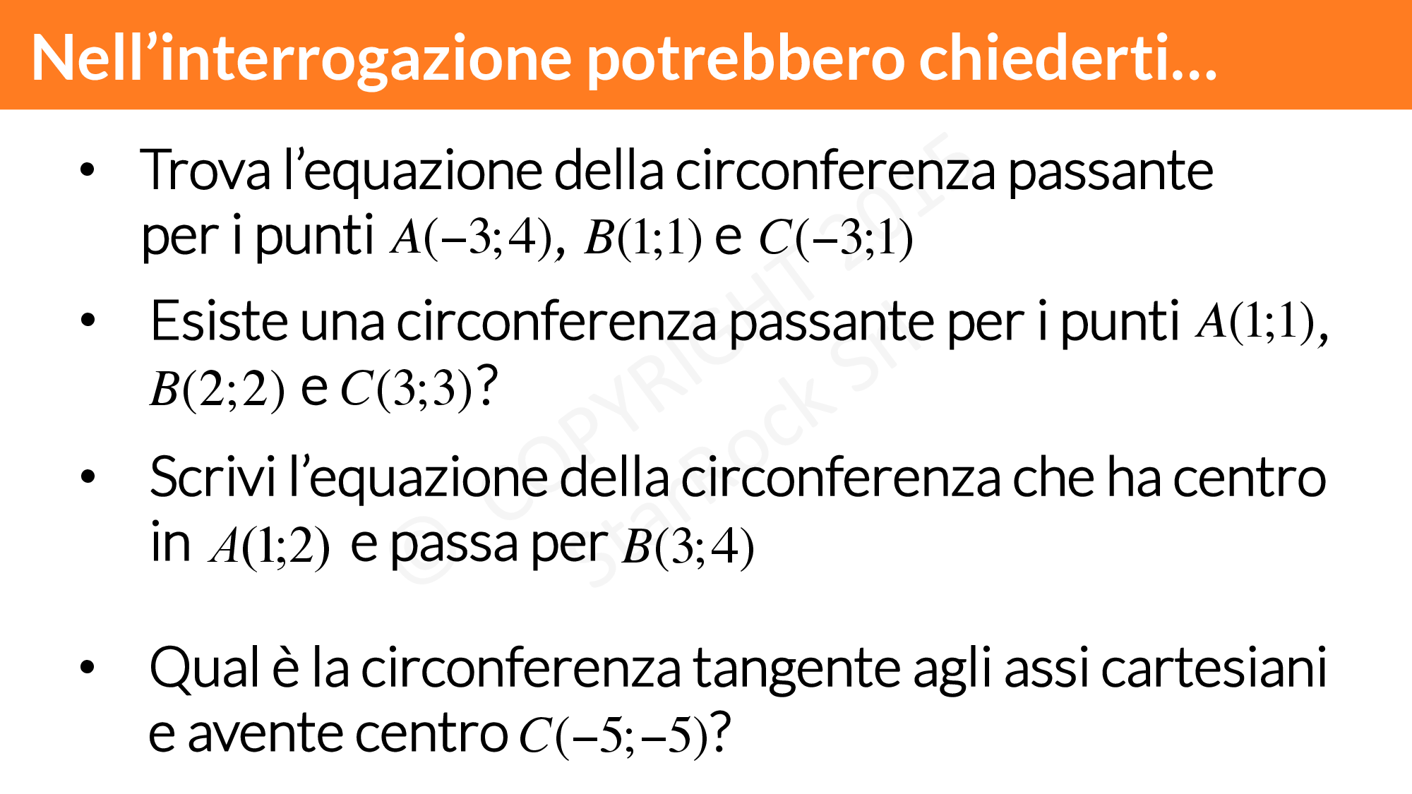 Interrogazione sull’equazione di una circonferenza: le possibili domande