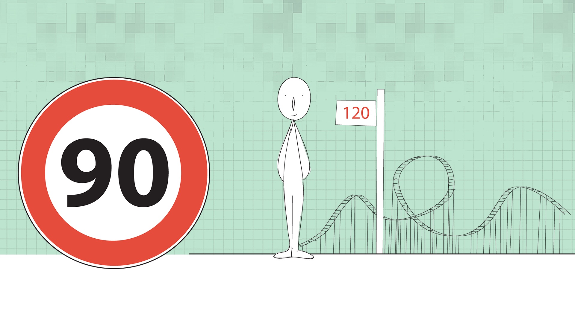 Per esempio quando vedi il cartello di limite di velocità come quello qui di fianco sai che non devi superare la velocità di £$90 \ km/h$£. Sostituisci una £$x$£ alla velocità e ottieni la disequazione £$x\le 90\ km/h$£.