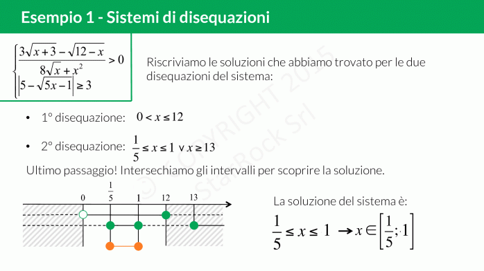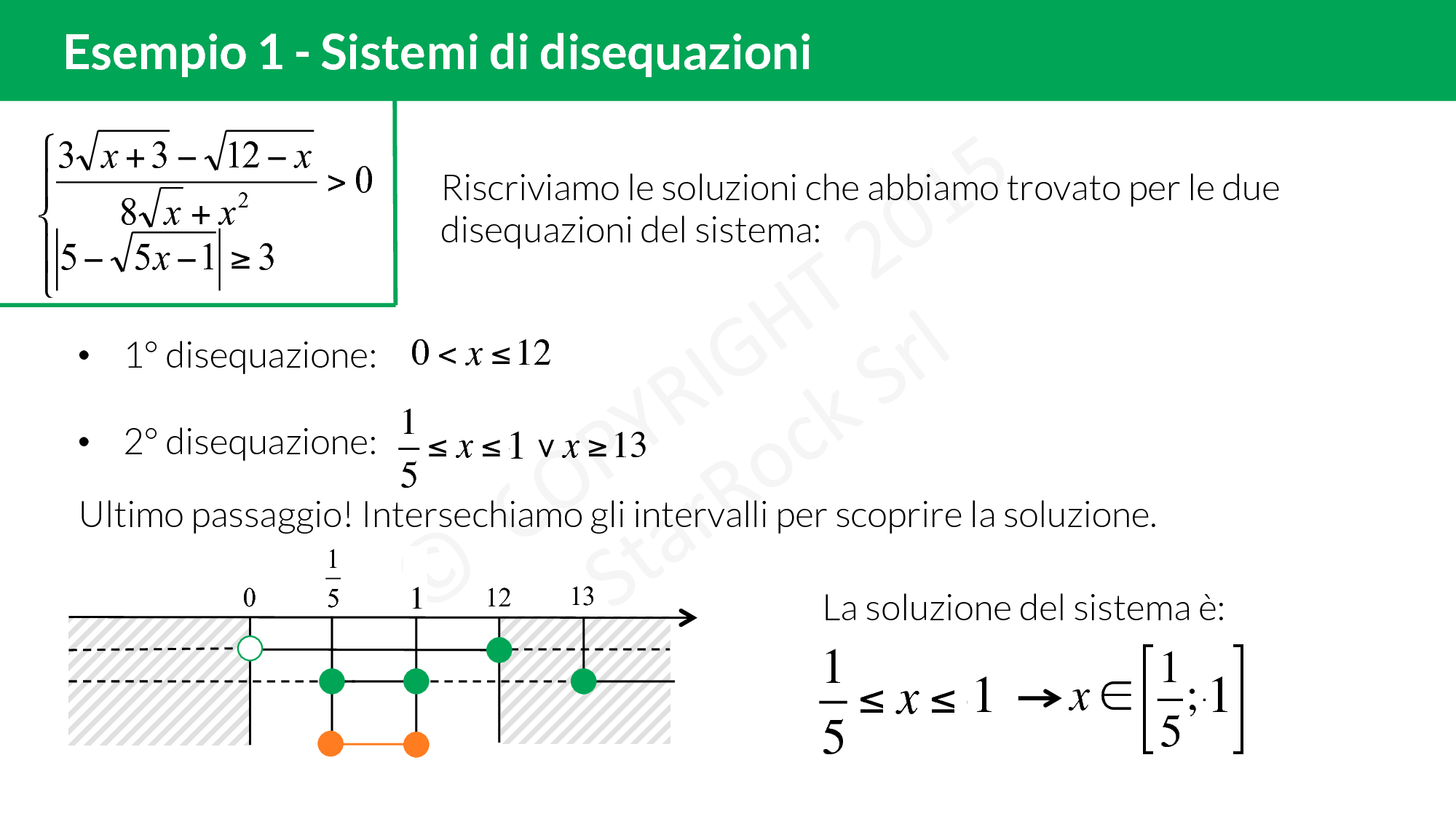 Infatti "mettere a sistema" significa trovare le soluzioni comuni (cioè che verificano contemporaneamente) di tutto ciò che viene messo a sistema (equazioni o disequazioni che sia).