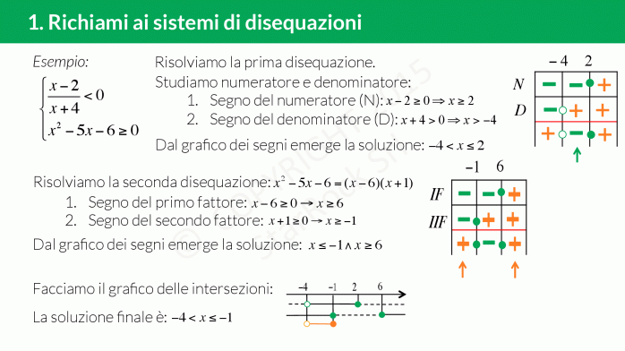 Se sai già come risolvere le disequazioni, ora ti tocca vedere come risolvere i sistemi di disequazioni. In realtà non c’è nulla di nuovo. Ti basta ricordare cosa significa "mettere a sistema" delle disequazioni. Devi trovare le soluzioni comuni, quindi dovrai fare l’intersezione delle soluzioni di ogni singola disequazione presente nel sistema.