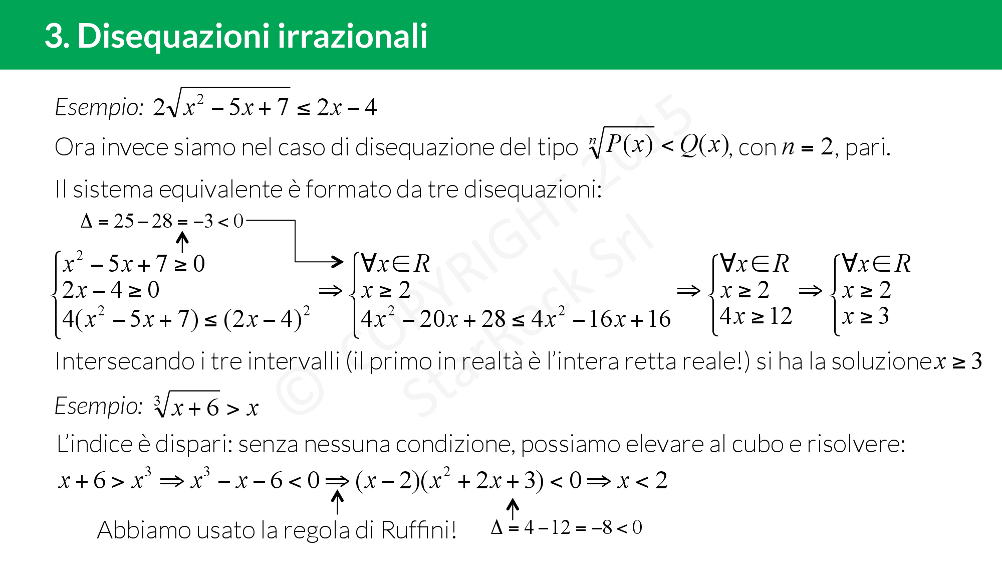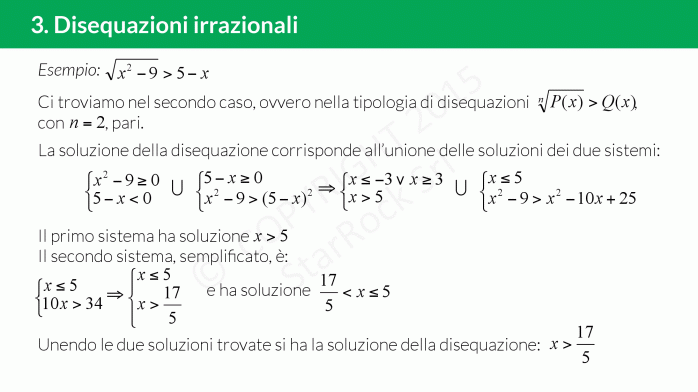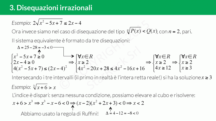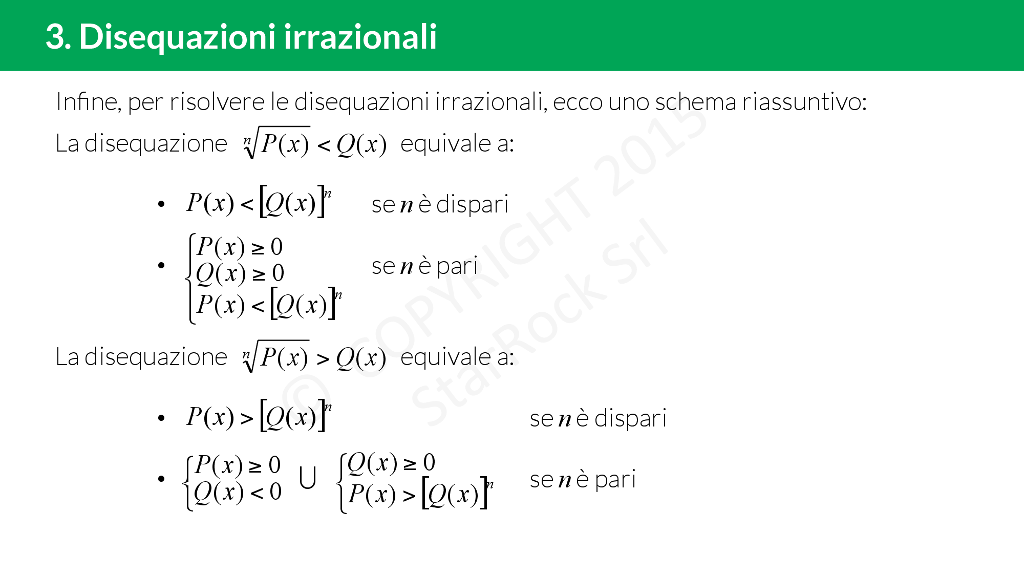 Ecco uno schema riassuntivo per risolvere le disequazioni irrazionali: