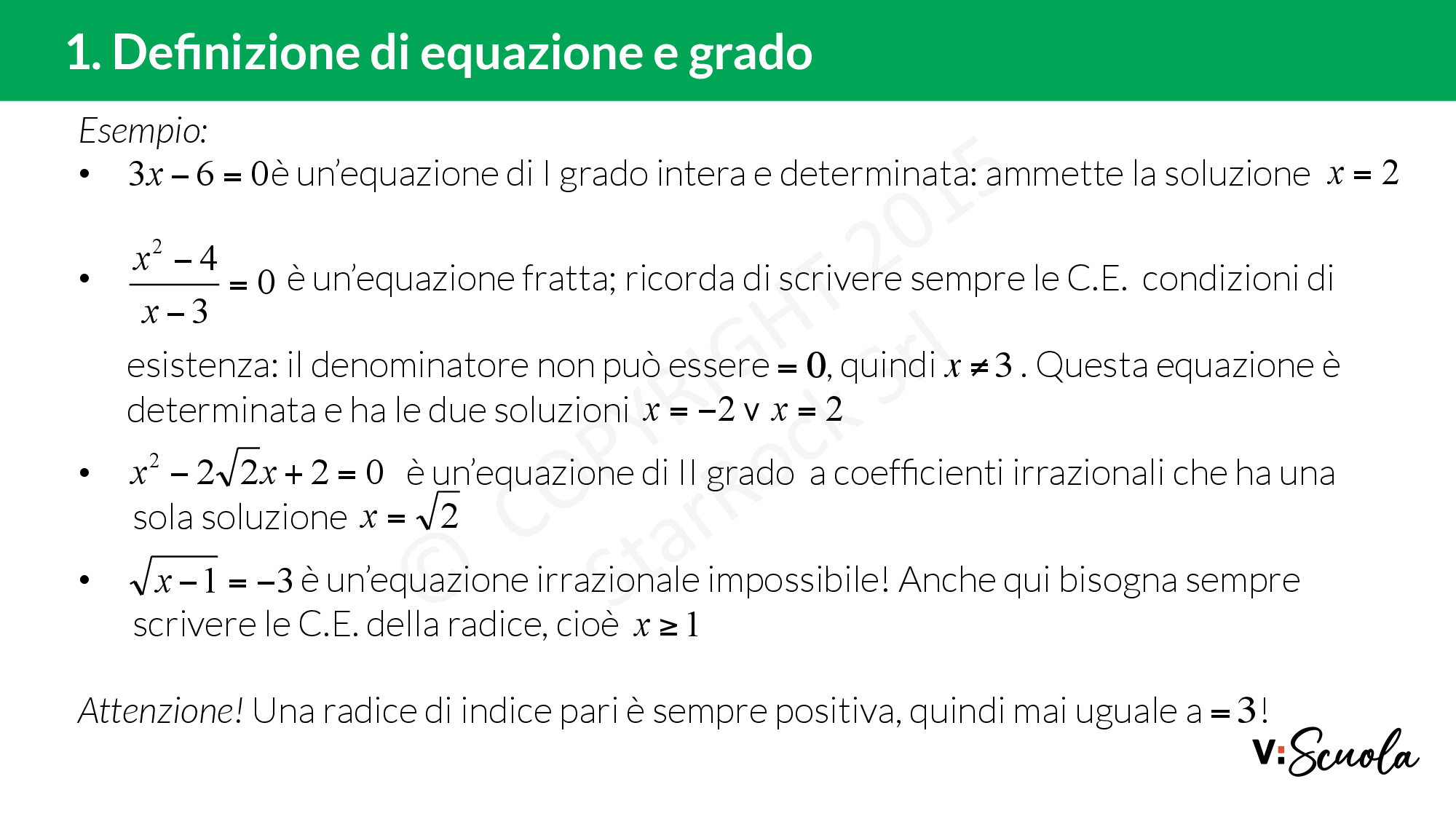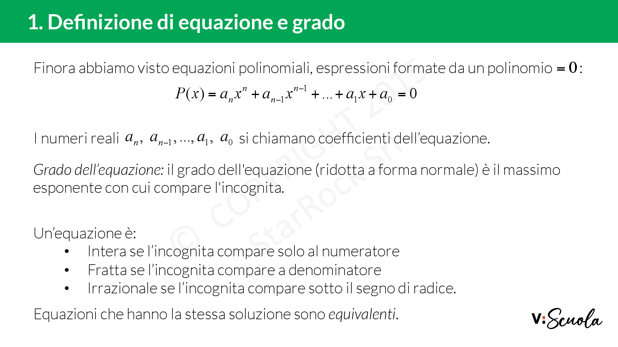 - Cos'è un'equazione e qual è il suo grado