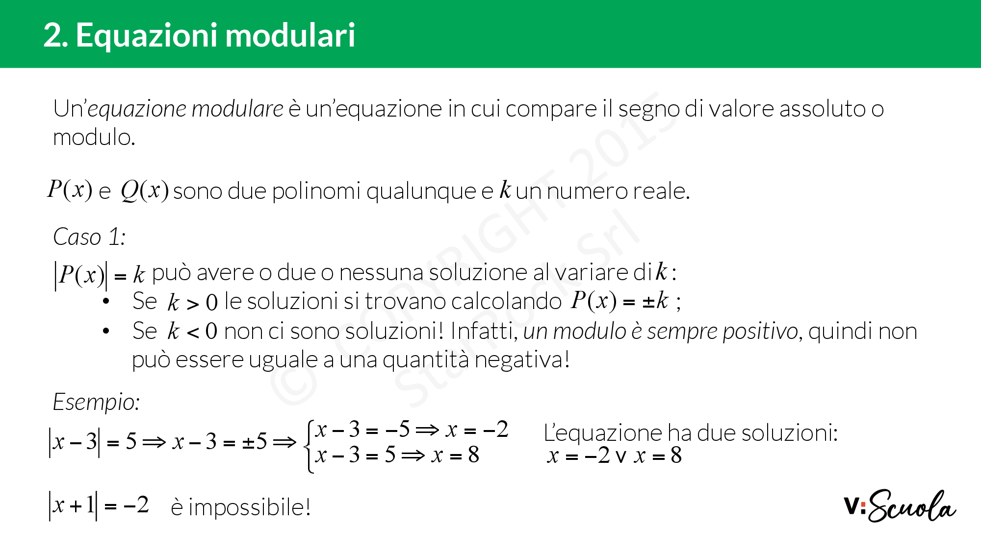 Infatti quando in un’equazione è presente un valore assoluto, bisogna: