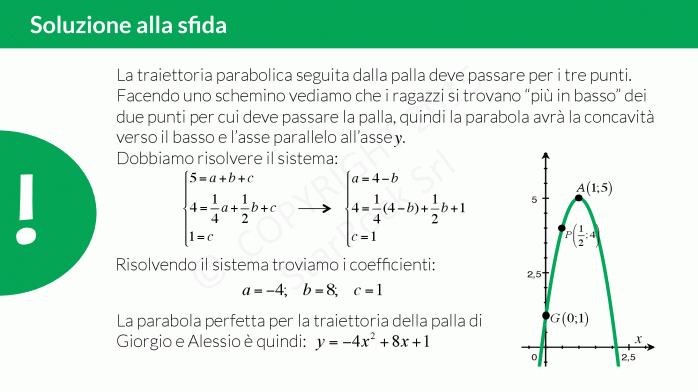 Prova a calcolare l’equazione della parabola che descrive la traiettoria voluta da Giorgio e Alessio!
