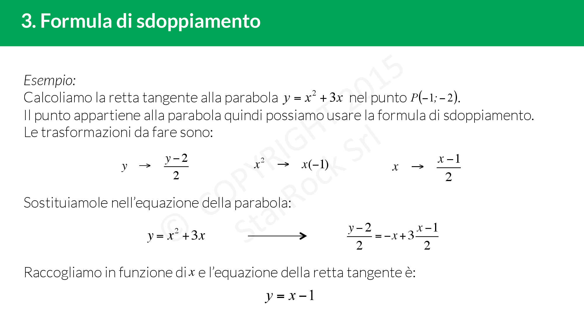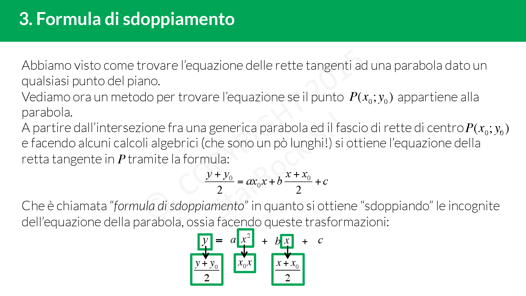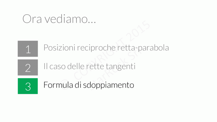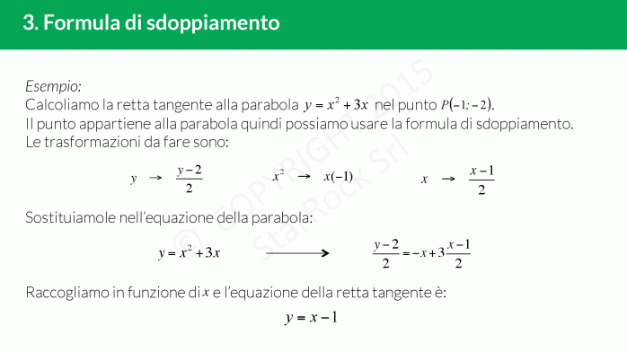 Si chiama “formula di sdoppiamento" in quanto si ottiene “sdoppiando" le incognite dell’equazione della parabola.
