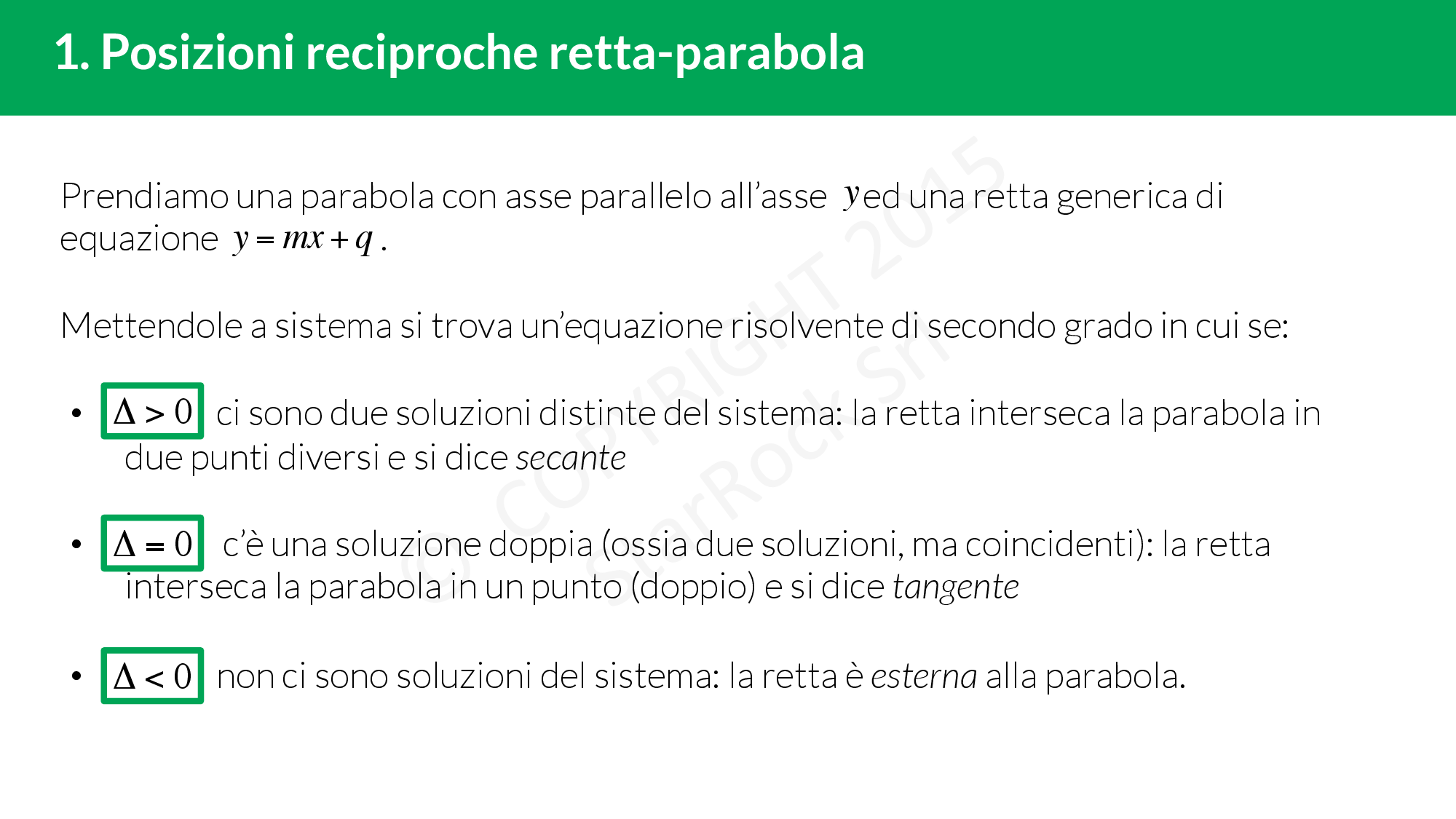 Impara le posizioni reciproche tra retta e parabola!