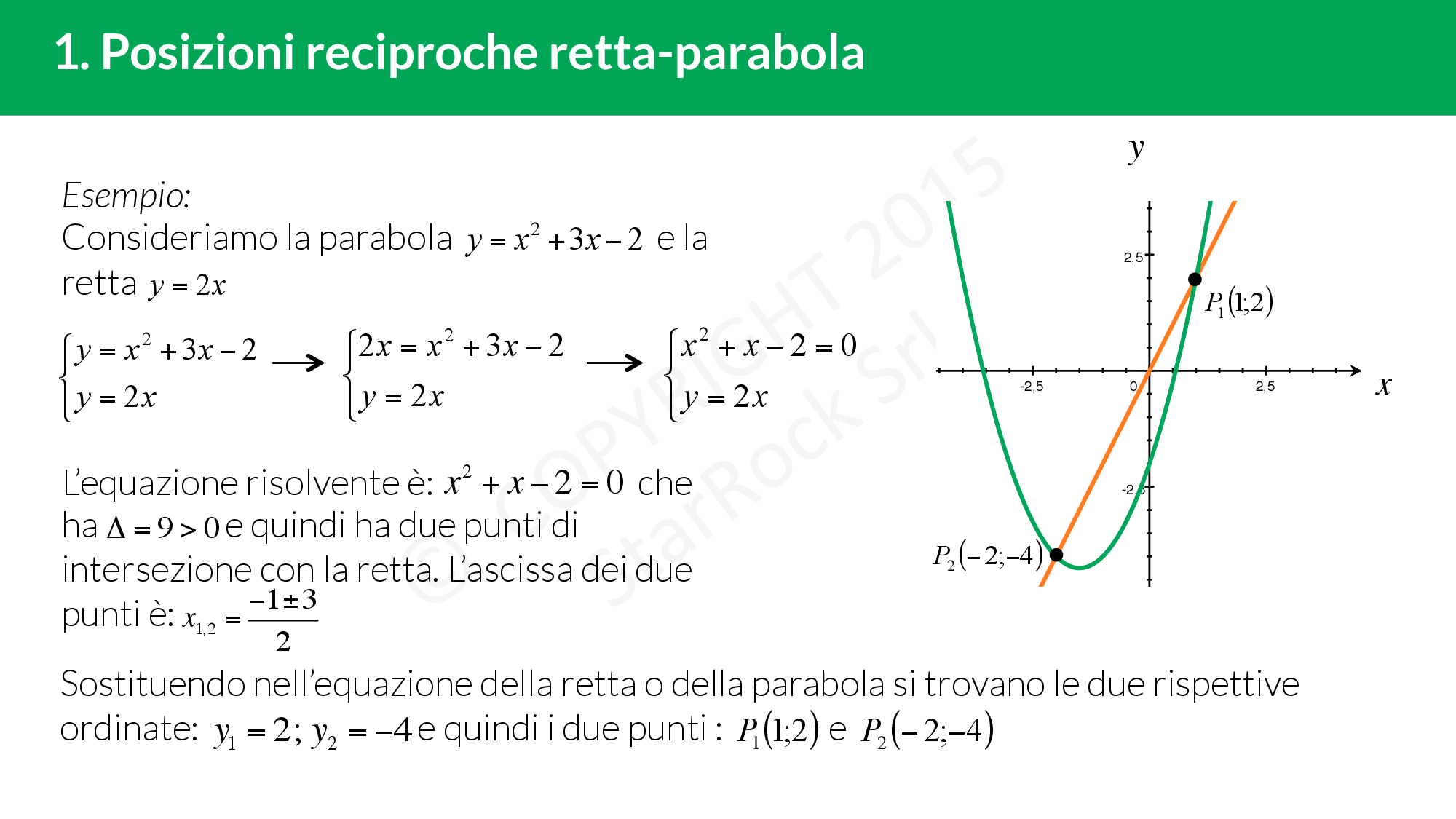 - Posizioni reciproche retta-parabola