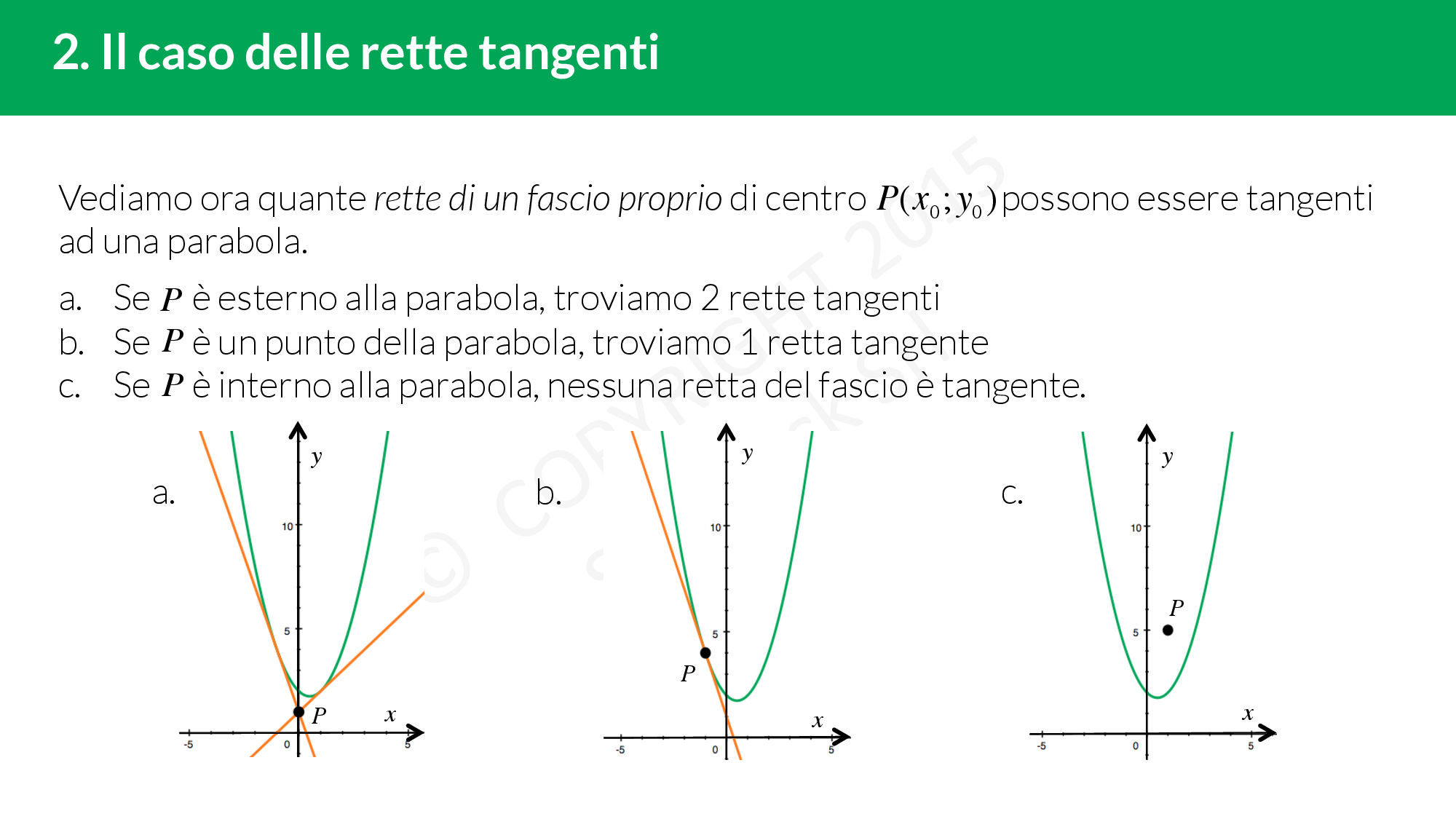 - Se £$P$£ appartiene alla parabola, troviamo una retta tangente
