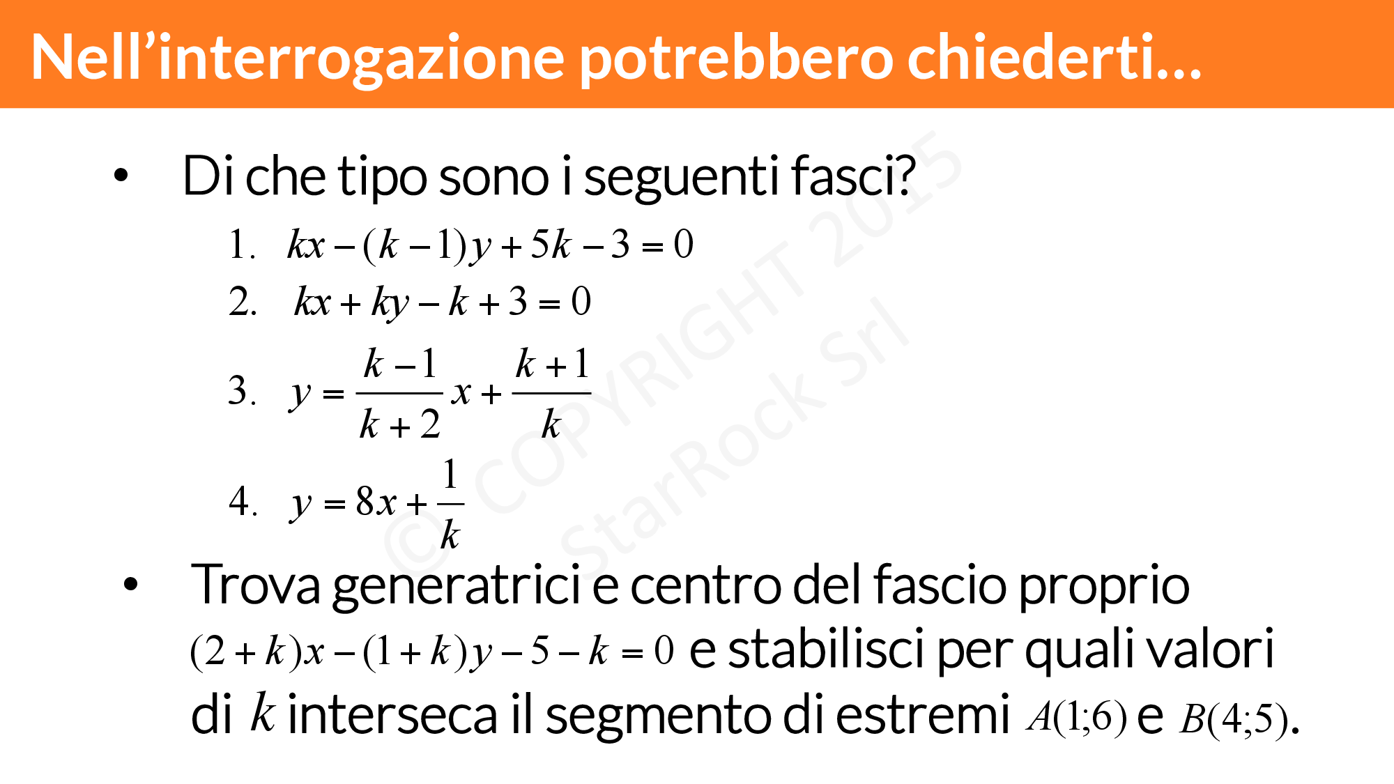 Prima di iniziare lo studio dei sistemi parametrici, è bene ripassare i fasci di rette. Ricordi cosa sono?