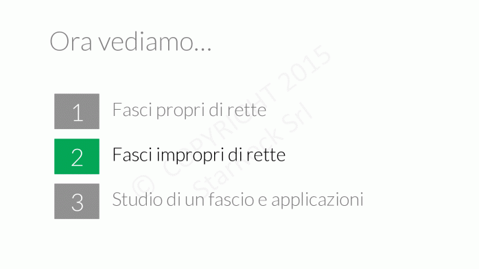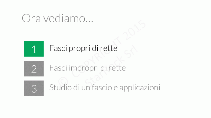 - fasci di rette propri: tutte le rette sono incidenti in uno stesso punto detto centro del fascio;