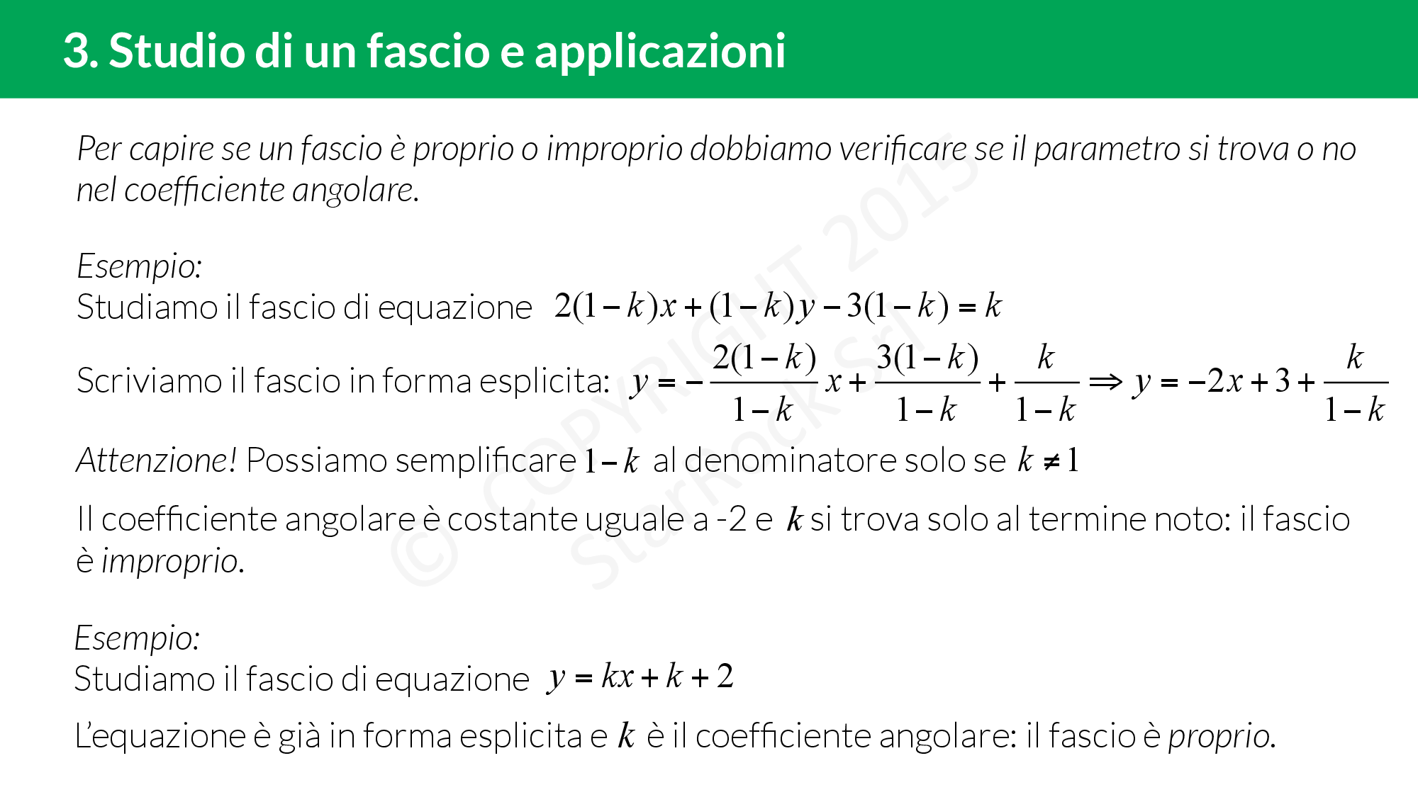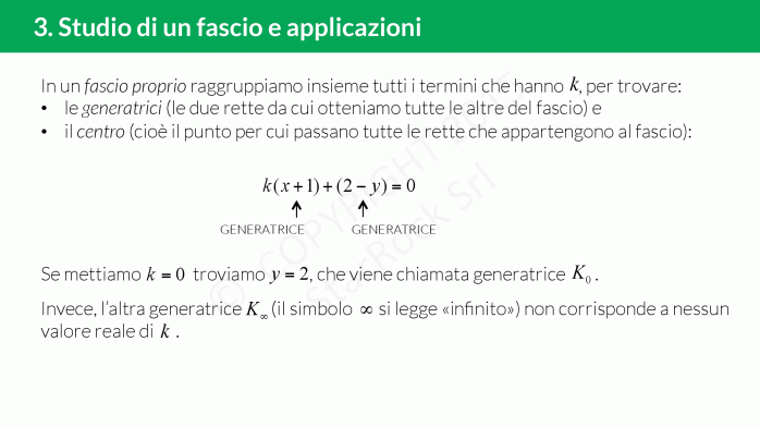 - se è improprio, è sufficiente studiare la retta con £$k=0$£ e poi studiare al variare del parametro come sono fatte le rette.