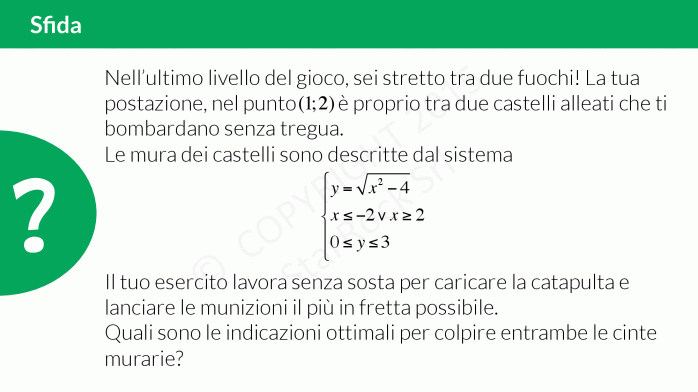 Le mura dei castelli sono descritte da un sistema matematico! Devi trovare il modo di colpire entrambe le cinte murarie con la catapulta, come fai? Prova a risolvere la sfida e poi corri ad allenarti con gli esercizi sui sistemi parametrici con l’iperbole!