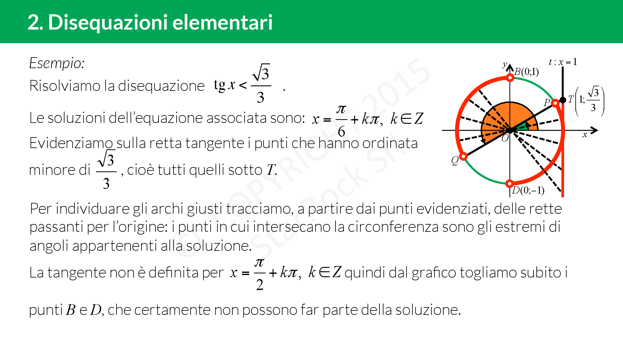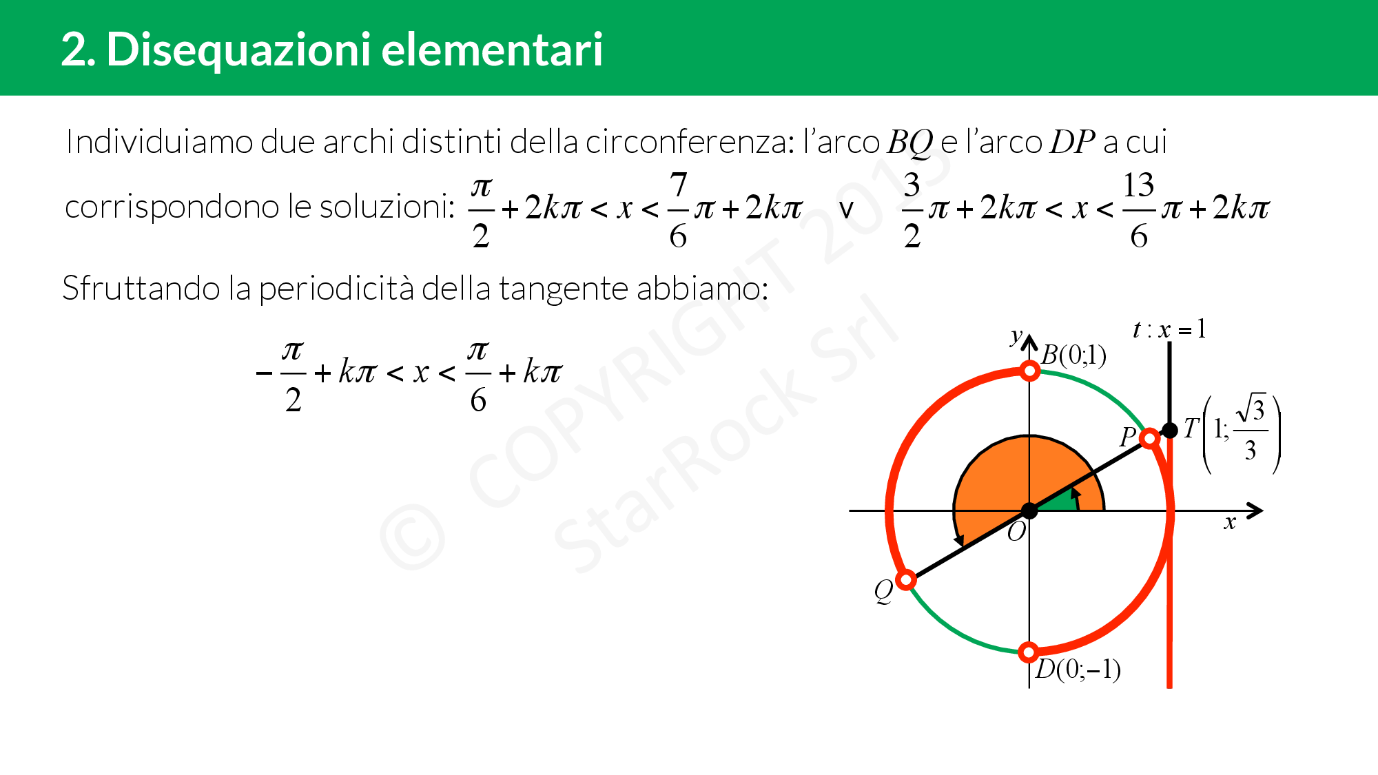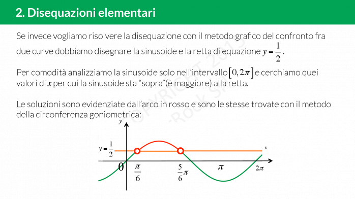 Risolvi le disequazioni goniometriche elementari con i due metodi grafici della circonferenza goniometrica o della funzione.