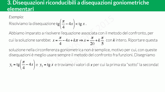 - Disequazioni goniometriche riconducibili a disequazioni goniometriche elementari