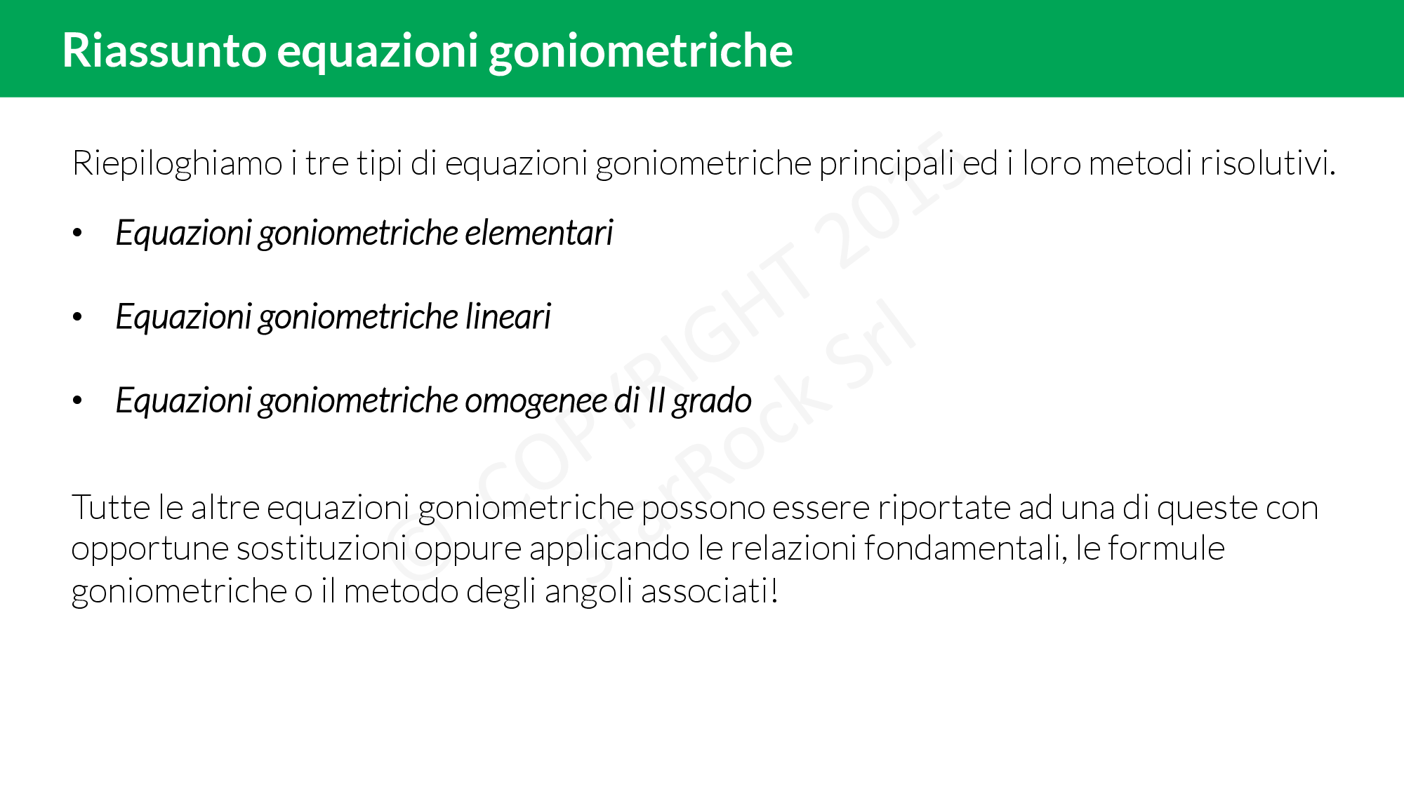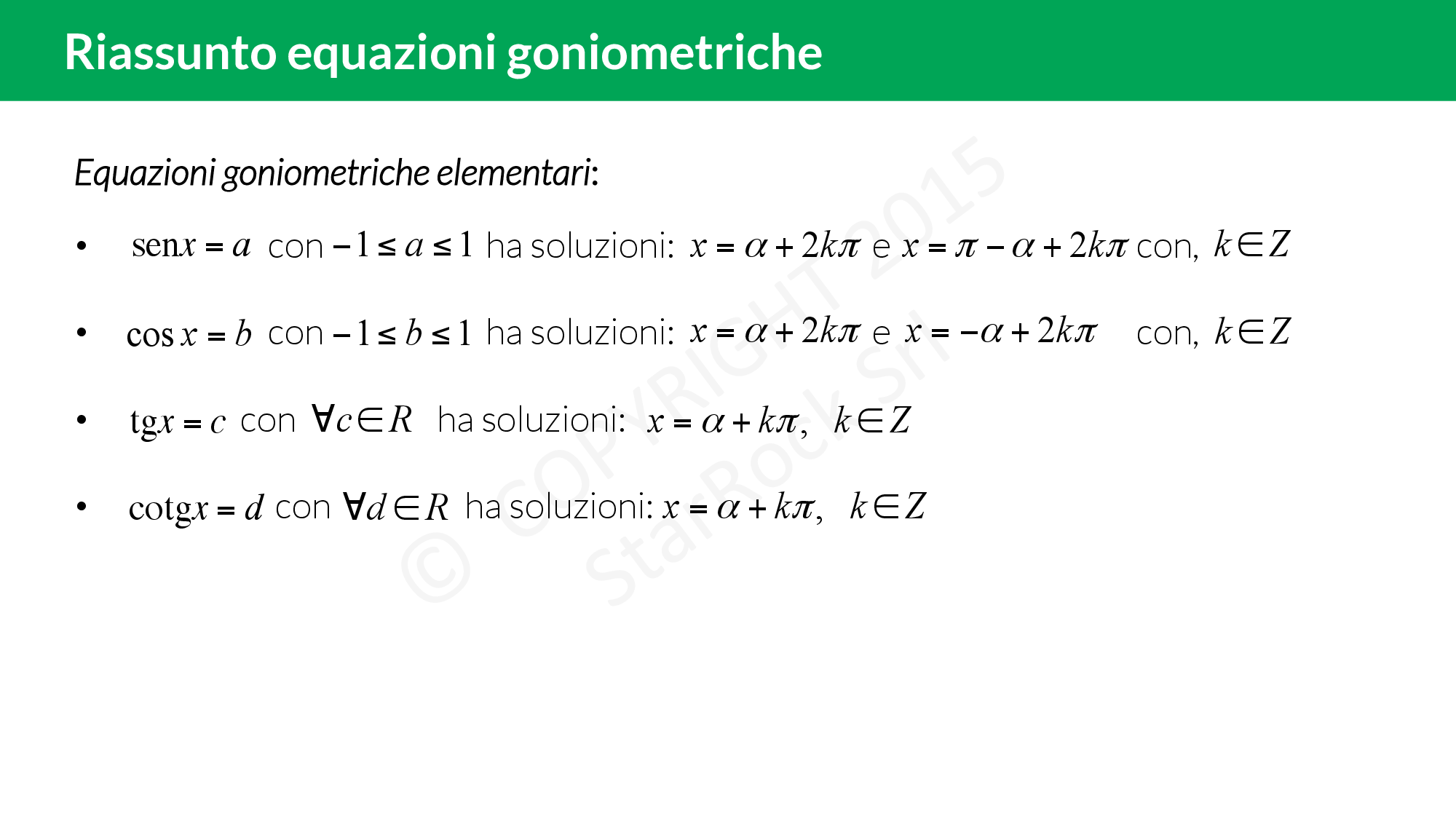 Ripasso: equazioni goniometriche elementari