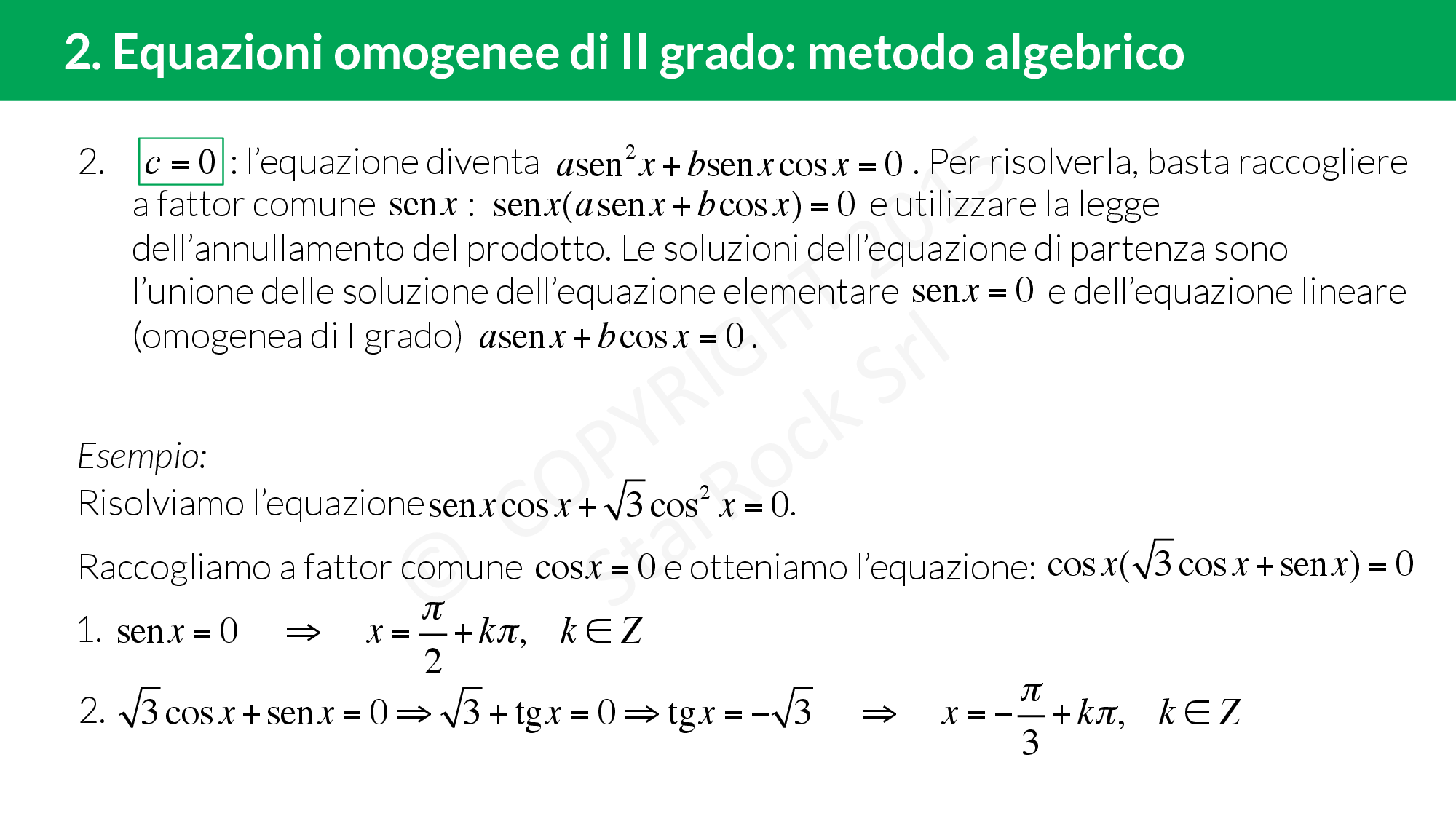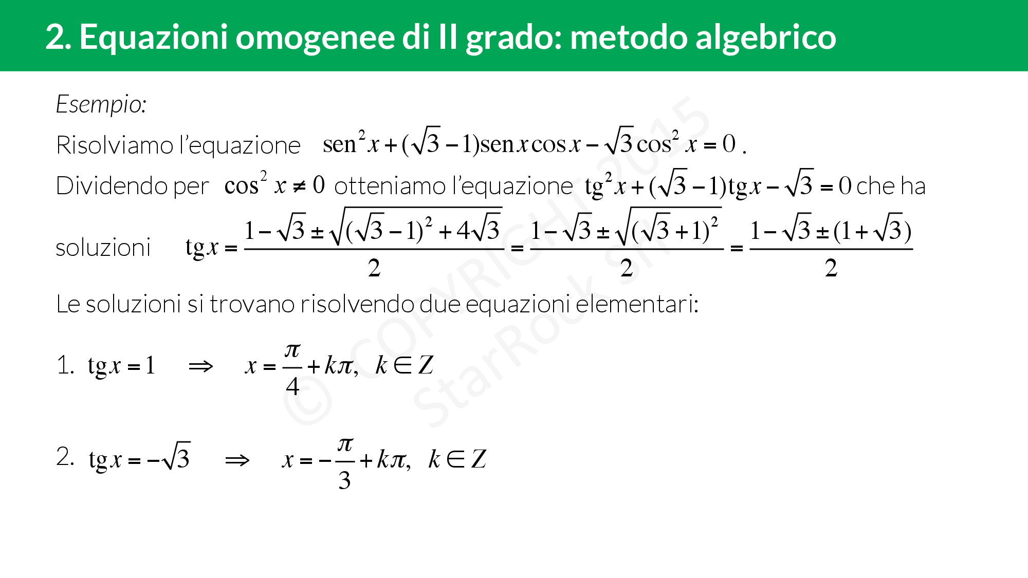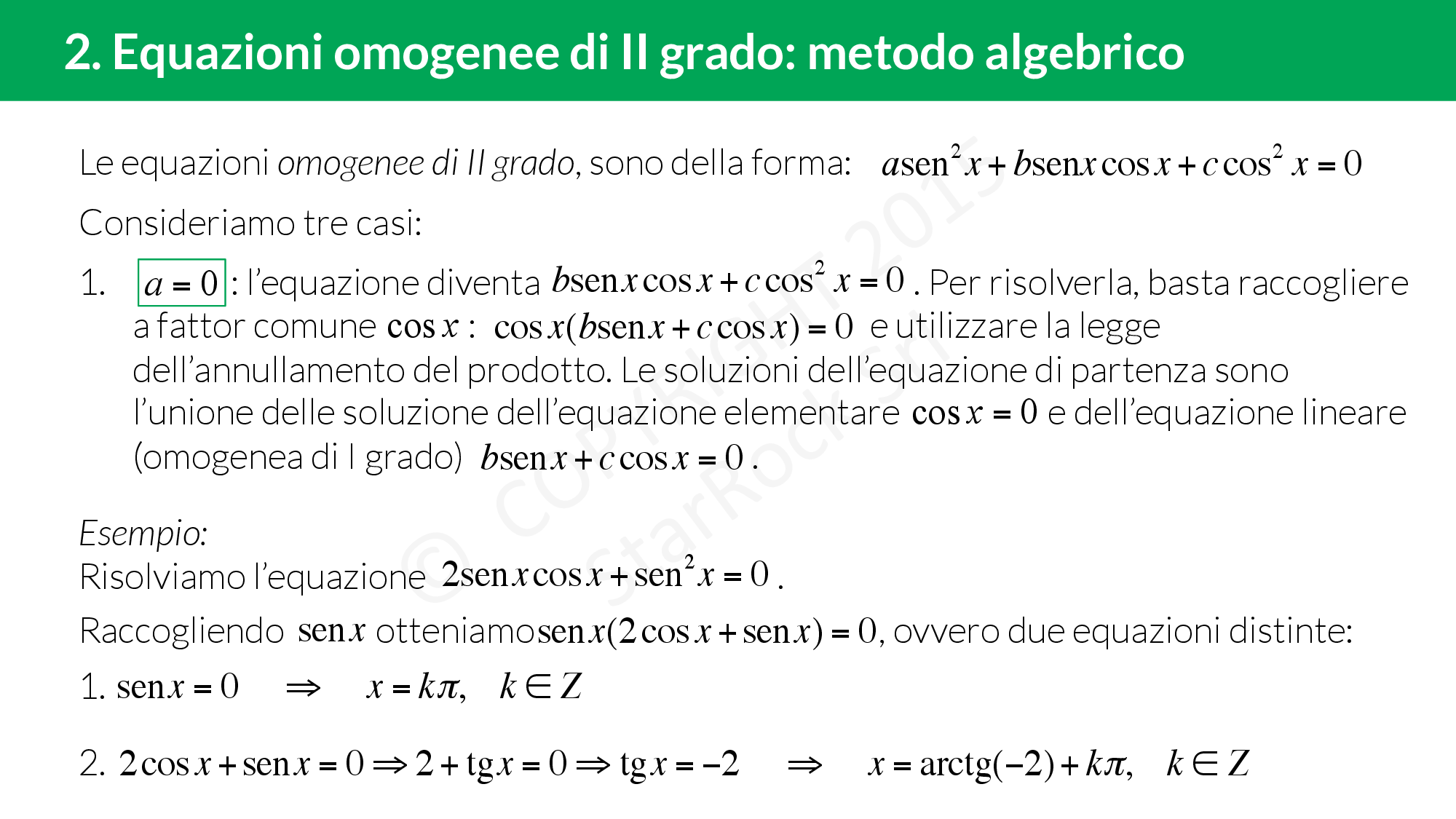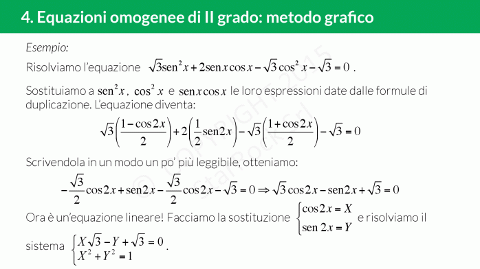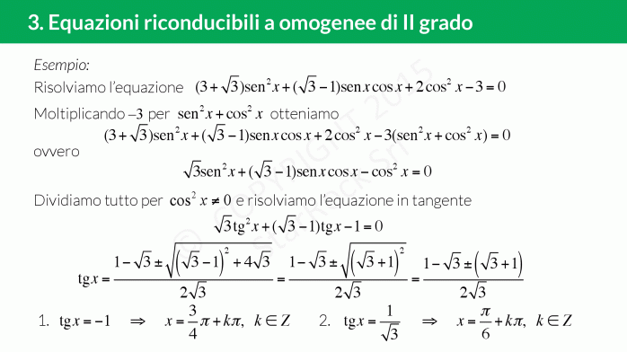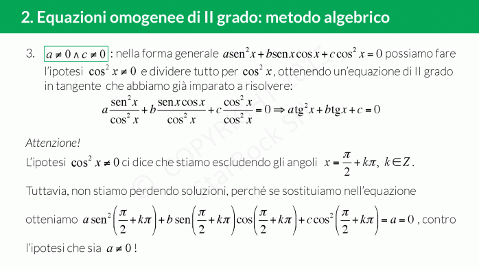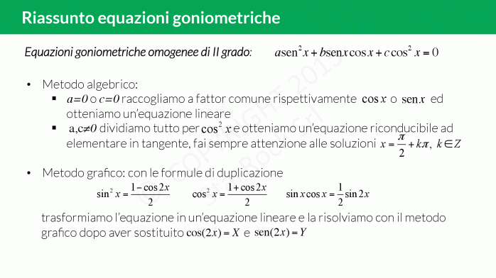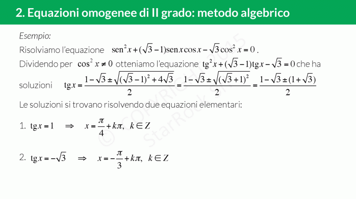 - Equazioni omogenee di II grado: metodo algebrico