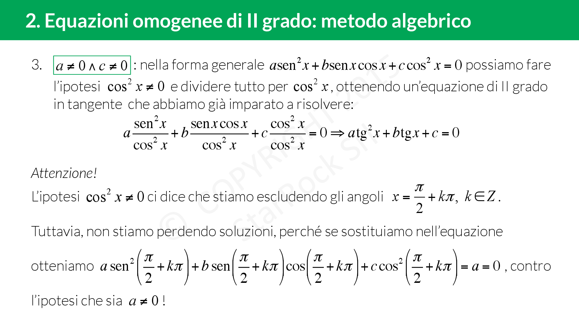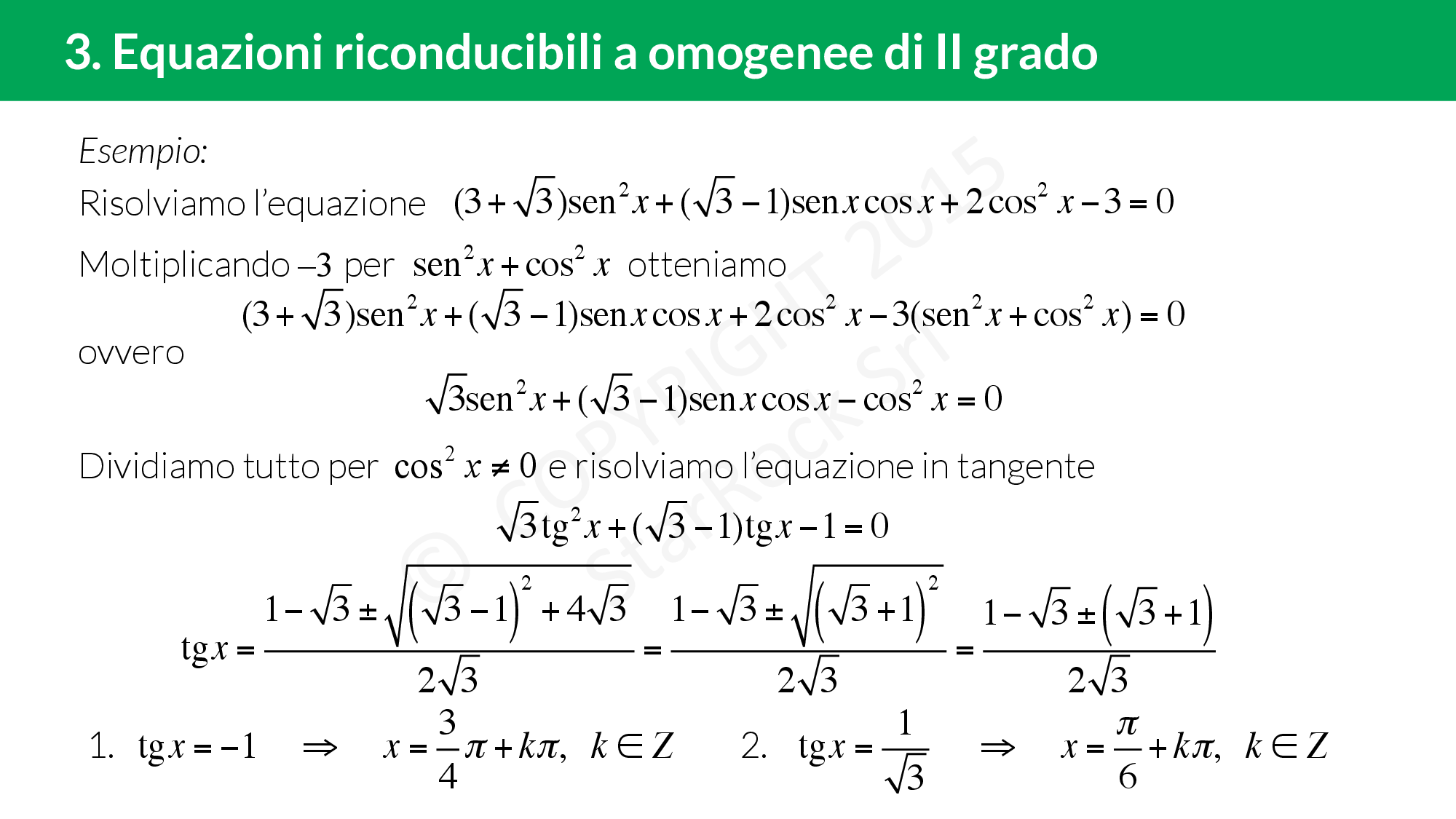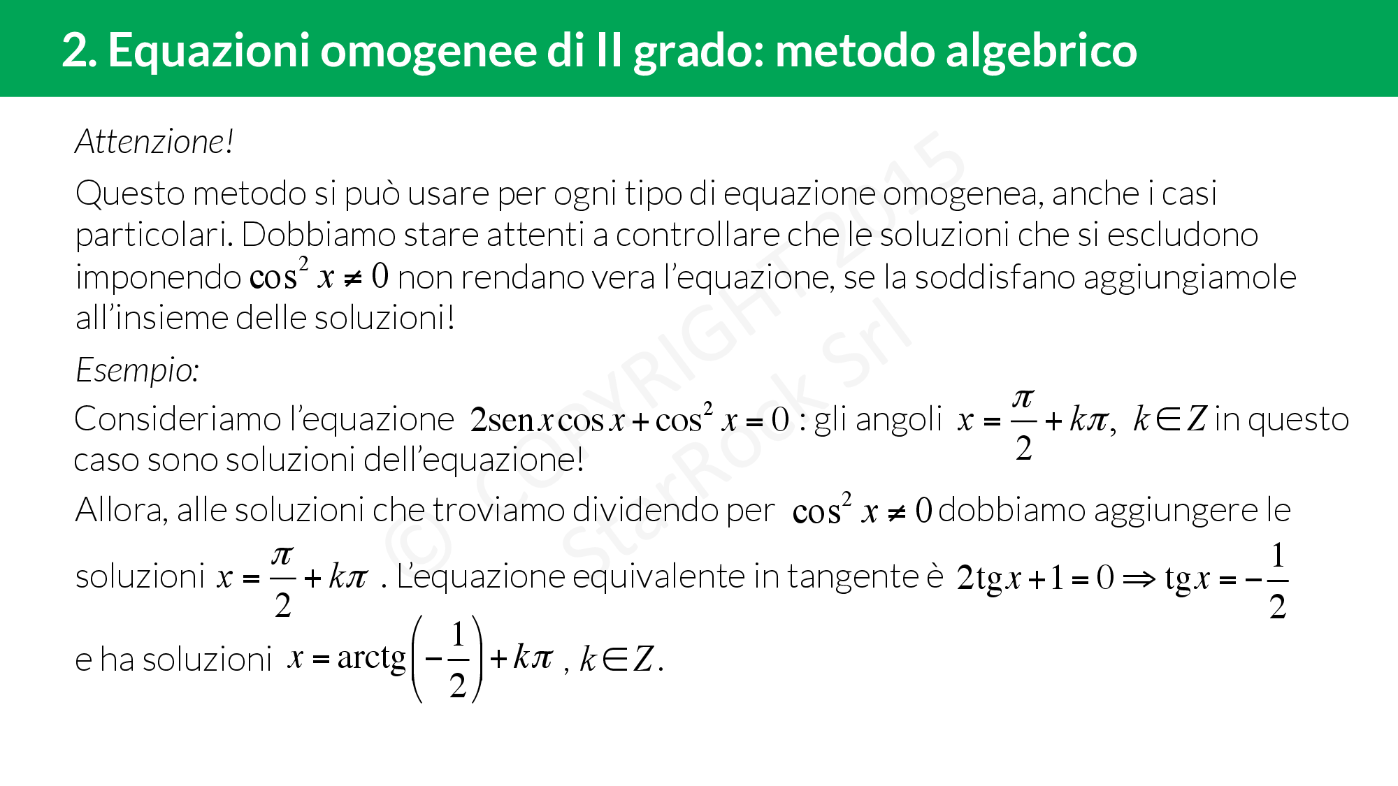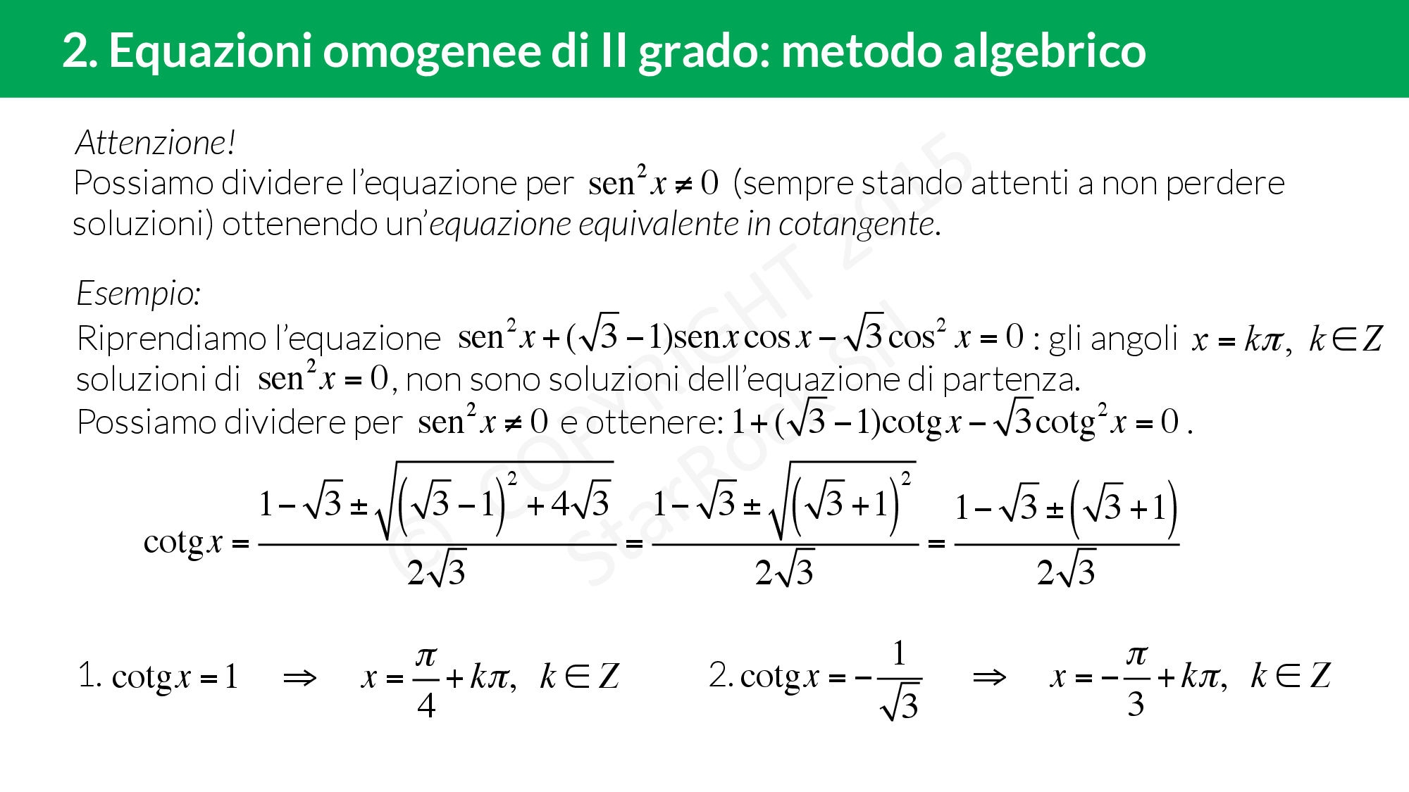 - Equazioni omogenee di II grado: metodo algebrico