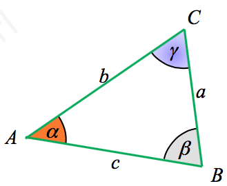 $$a^2=b^2+c^2-2\cdot b c \cdot cos\,\alpha$$ $$b^2=a^2+c^2-2\cdot a c \cdot cos\,\beta$$ $$c^2=a^2+b^2-2\cdot ab \cdot cos\,\gamma$$