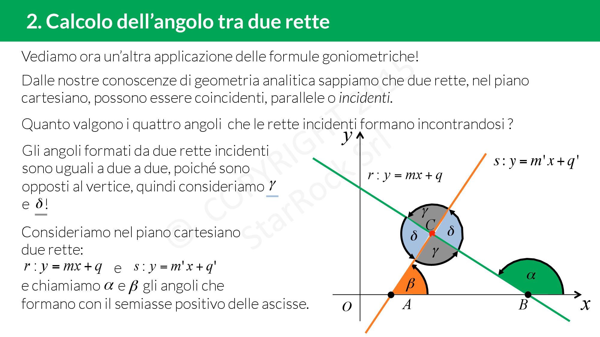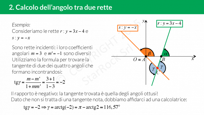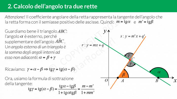 Tabella angolo aggiunto, angolo tra due rette, coefficiente angolare di rette perpendicolari