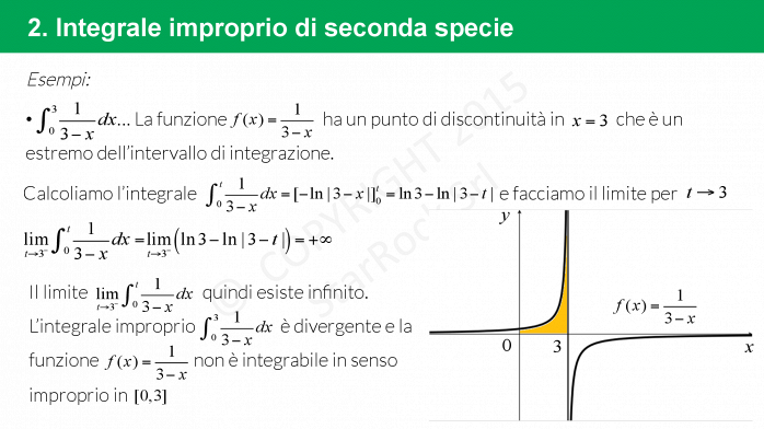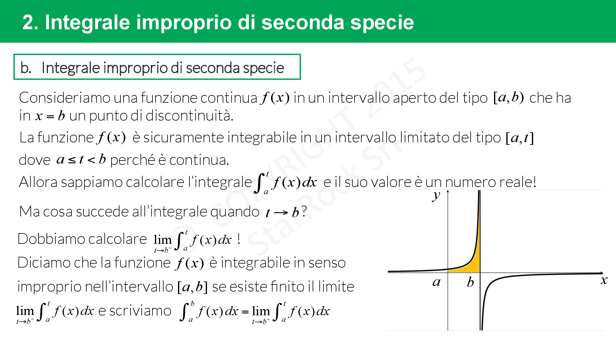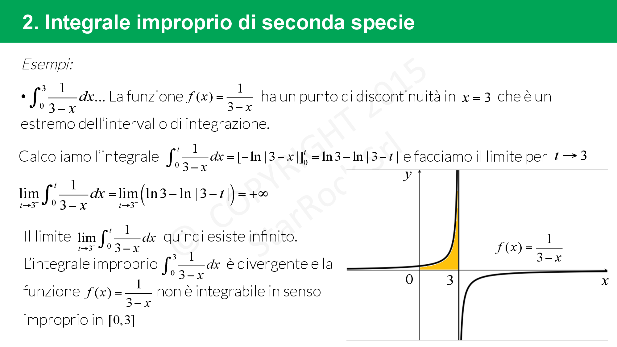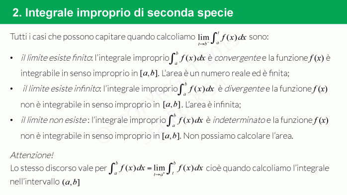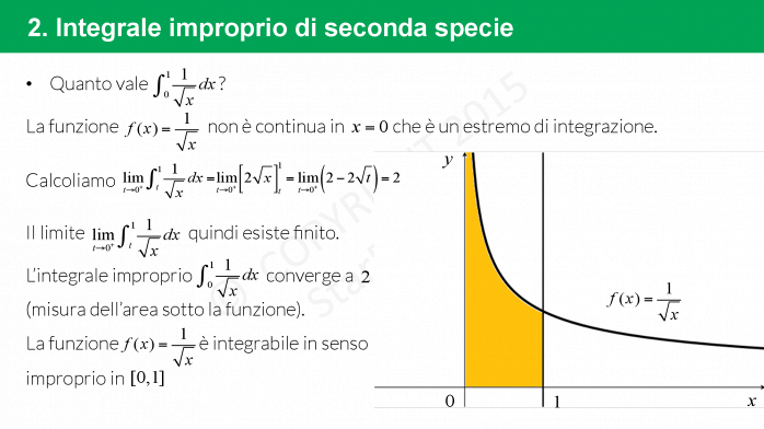 Gli integrali impropri sono di seconda specie quando uno degli estremi di integrazione è un punto di discontinuità della funzione.