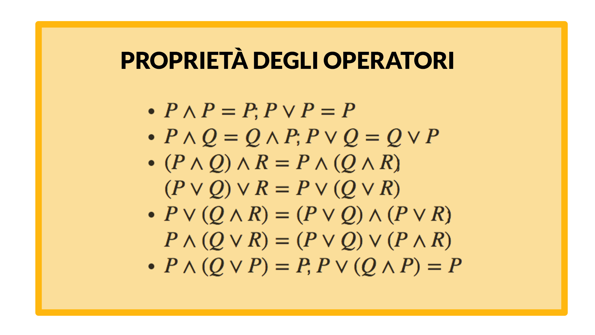 Le proprietà sono le ‘regole’ con le quali possiamo ‘manipolare’ le proposizioni semplici senza cambiare il loro valore di verità. Vediamole insieme!