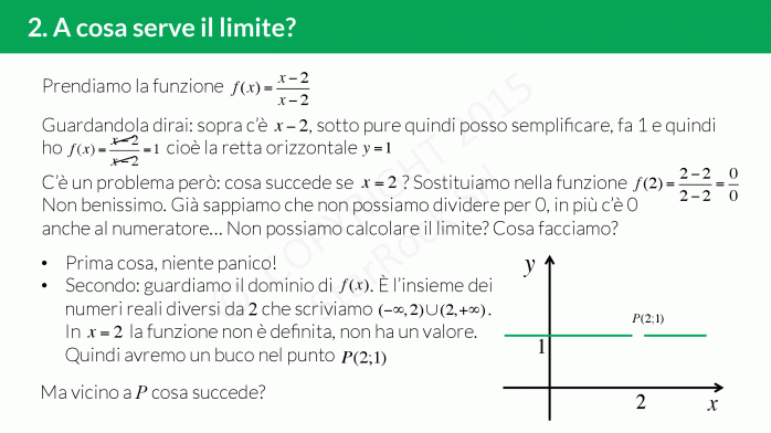 Ci sono funzioni più "brutte", in cui accadono cose "strane" (buchi, salti, gradini…), queste funzioni sono discontinue e per sapere come si comportano vicino ai punti strani dobbiamo calcolarne il limite!
