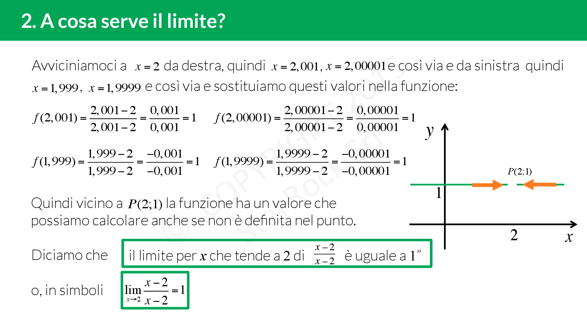 In base al questo possiamo definire il comportamento della funzione vicino al punto che ci interessa analizzare.