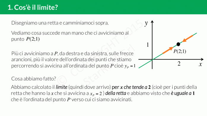 Il limite è uno strumento matematico che ci permette di capire come si comporta una funzione, cioè cosa succede alla £$y$£ nel suo grafico vicino a un punto con una certa ascissa £$x$£.