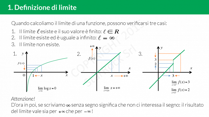 Ogni volta che devi calcolare il limite di una funzione in un punto, possono verificarsi tre possibili risultati: