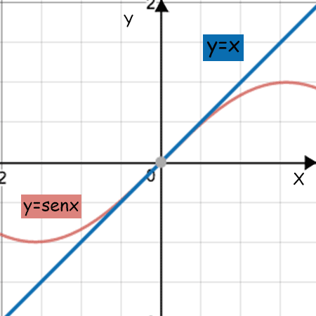 ESEMPIO: sappiamo che £$\lim\limits_{x\to 0}\frac{sen\,x}{x}=1$£ quindi possiamo scrivere £$\frac{sen\,x}{x}=1+\delta(x)$£ con £$\delta(x)\to 0 $£ per £$x\to 0$£. Allora £$sen\,x=x+x\delta(x)$£. Questo significa che vicino a £$ la funzione [iol_placeholder type="formula" engine="katex" display="inline"]sen\,x$£ e £$x$£ assumono “praticamente" gli stessi valori, con un errore minimo. Possiamo scrivere che £$sen\,x \sim x$£ in un intorno di £$x=0$£. A conferma di ciò, vediamo come i grafici di queste due funzioni sono pressoché identici vicino a [iol_placeholder type="formula" engine="katex" display="inline"/], ma l’errore aumenta man mano che ci allontaniamo da questo valore.