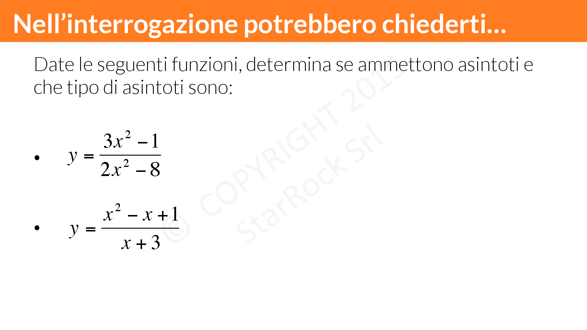 - Asintoti obliqui: quando esiste un probabile asintoto obliquo, quando è definito e qual è la sua equazione