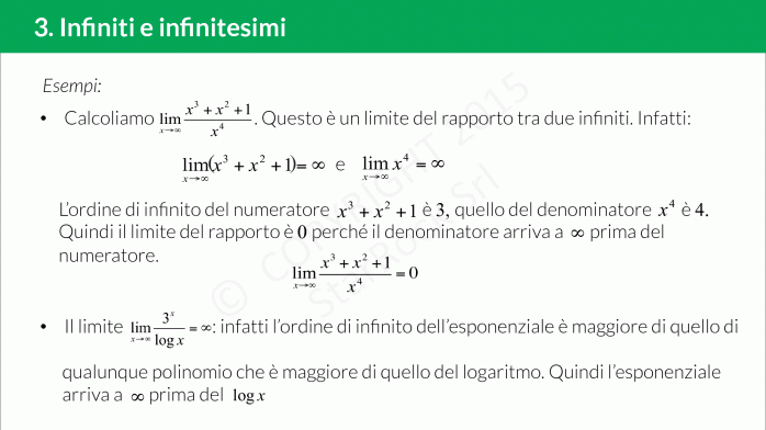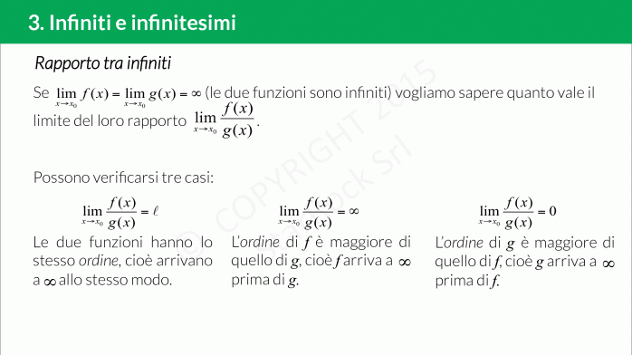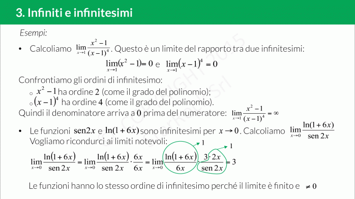 Il confronto fra infiniti e infinitesimi è fondamentale nella soluzione di forme indeterminate come infinito su infinito e zero su zero. Prima di usare i limiti per calcolare gli asintoti e i punti di discontinuità impara a calcolarli con i teoremi e gli esercizi svolti.