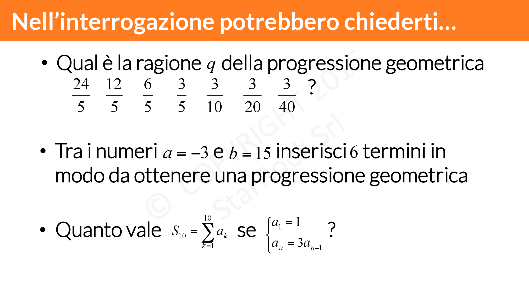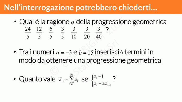 Ora che hai visto cosa sono le progressioni geometriche e quali sono le loro proprietà, prova a risolvere questi esercizi!