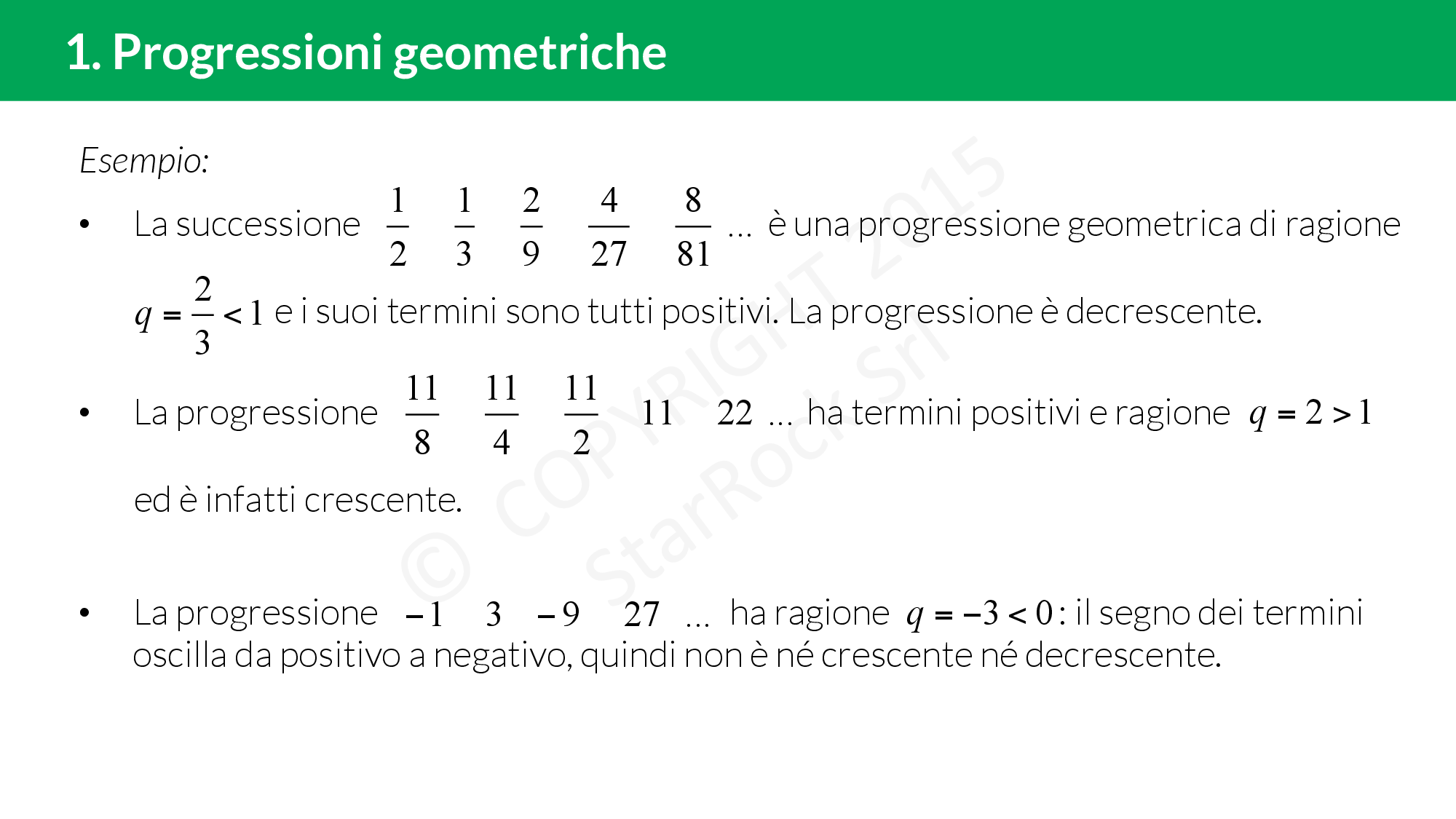 - se £$q > 0$£ allora tutti i termini avranno lo stesso segno, uguale a quello del primo termine della progressione;