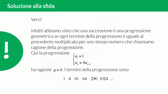 Prova a risolvere la sfida sulle progressioni geometriche!